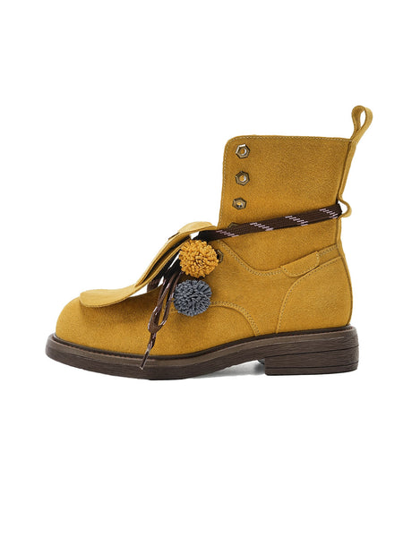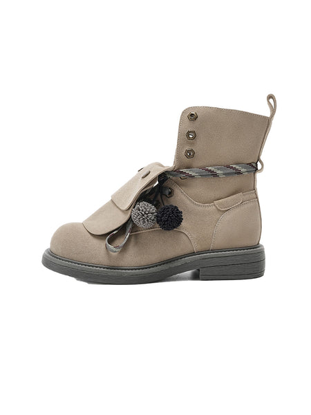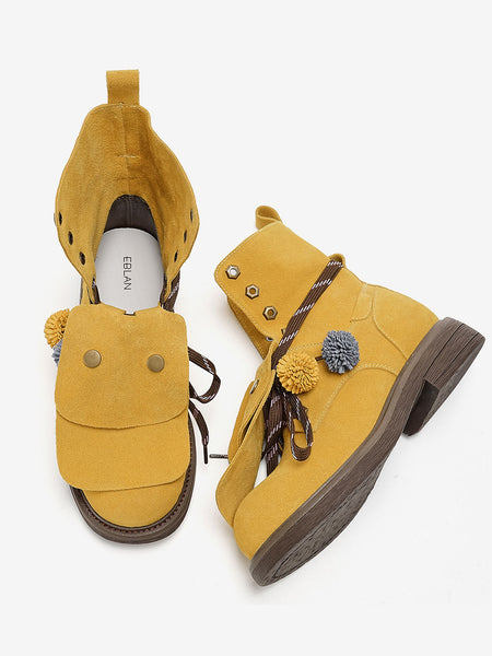 EBLAN丨Vintage Tassel Pendant Lace-up Ankle Boots