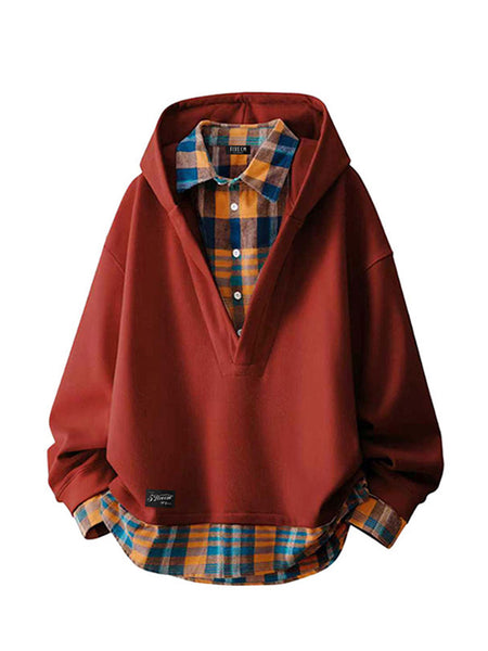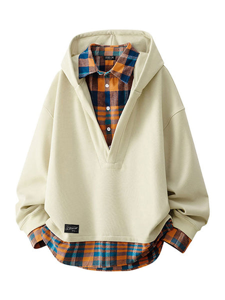 FIVECM | Casual Faux Two-Piece Hooded Sweatshirt
