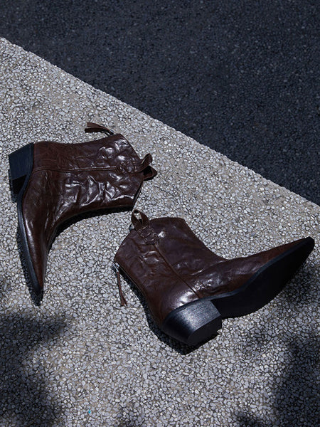 Fourth3ex丨Rivet Waxed Destroyed Denim Boots