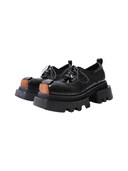 PINJIAHUI | Suede Patchwork Square-toe Derby Shoes