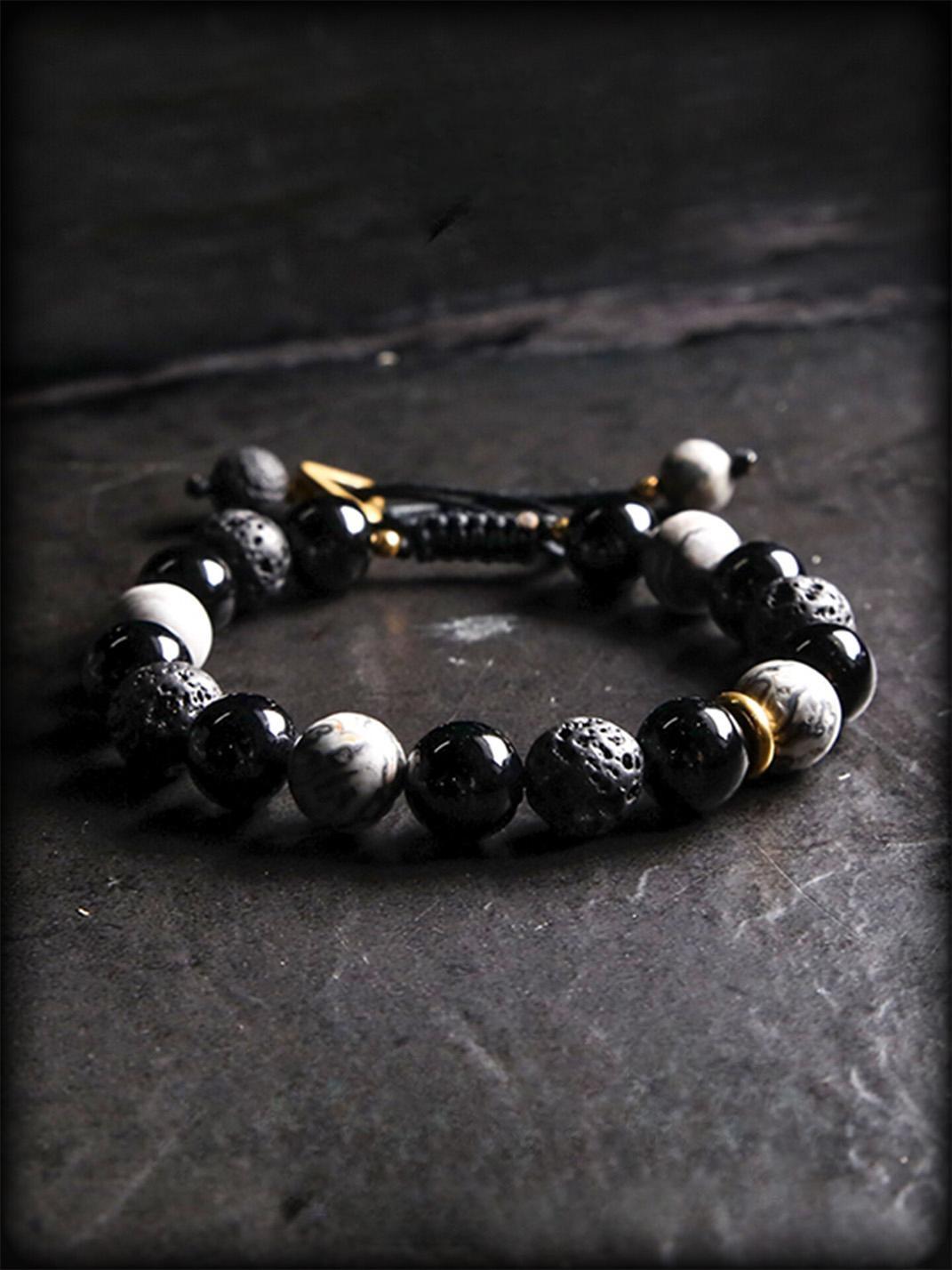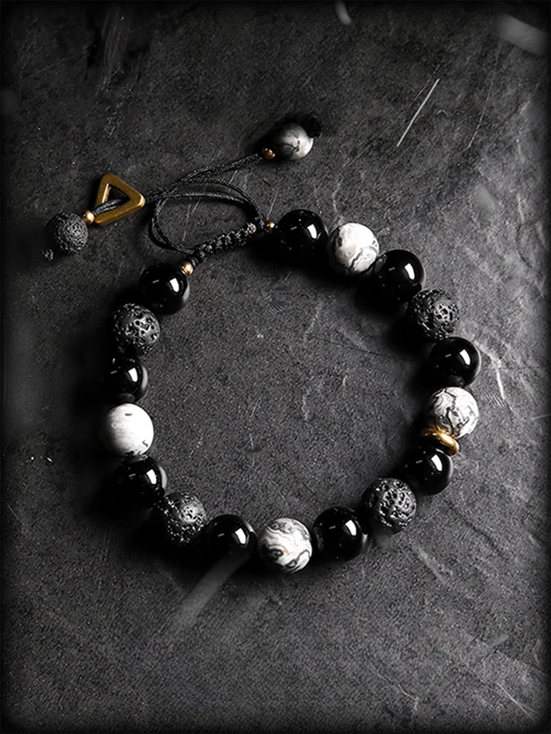 Guxi | Dark Retro Black Obsidian Beaded Bracelet Skip to content