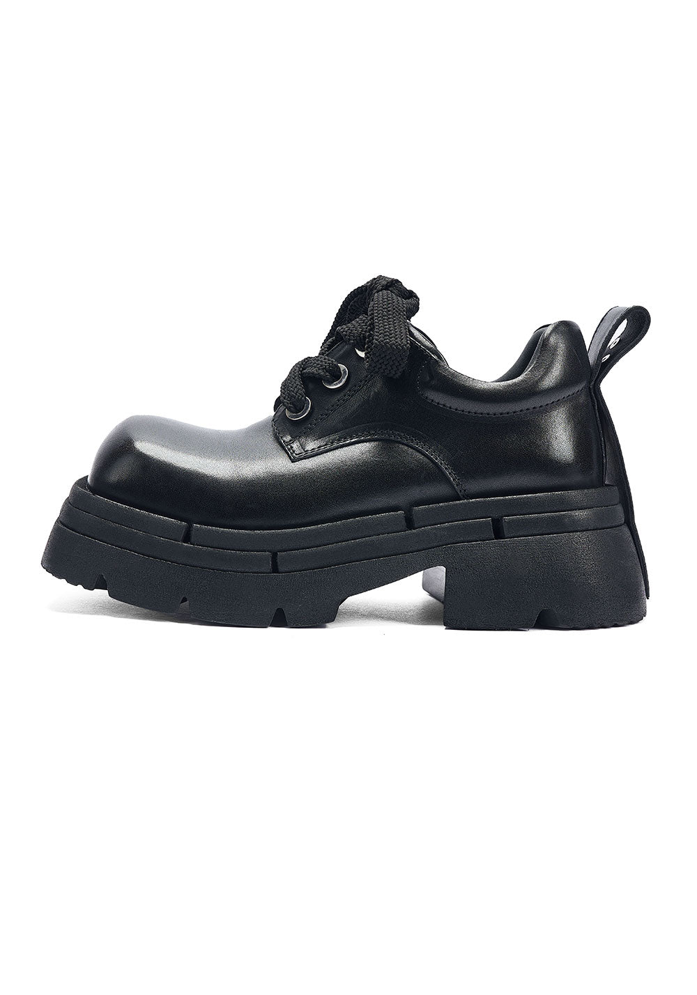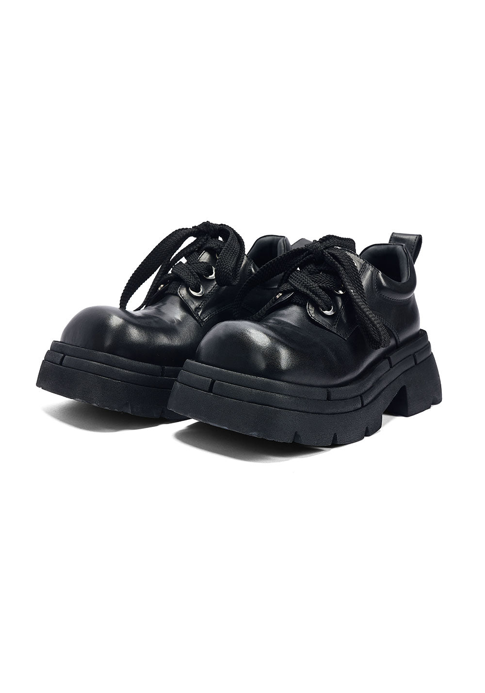 Design Concept: Nocturne . Oraculum. A uniquely lustrous horsehide upper, a rugged plush toy, and cool metal rivets embody theavant-garde aesthetic of "contradictory symbiosis." A thick, multi-layered composite sole with an aggressive serrated patterncreates a visually heightened silhouette while projecting a boundary-breaking presence that defies convention.