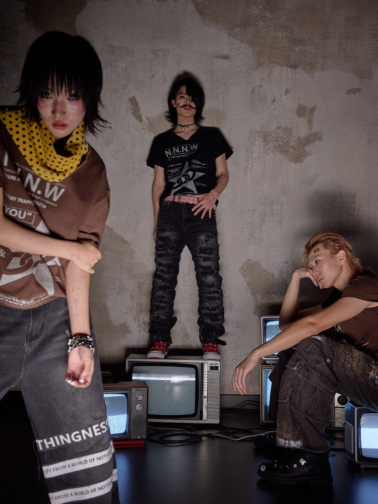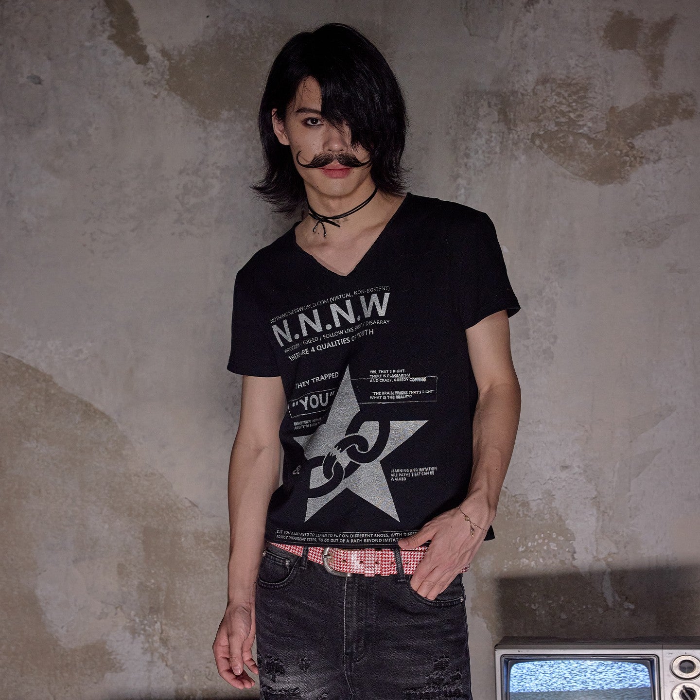 NOTHINGNESS WORLD | Lock Star Original V-neck Boxy Punk Tee