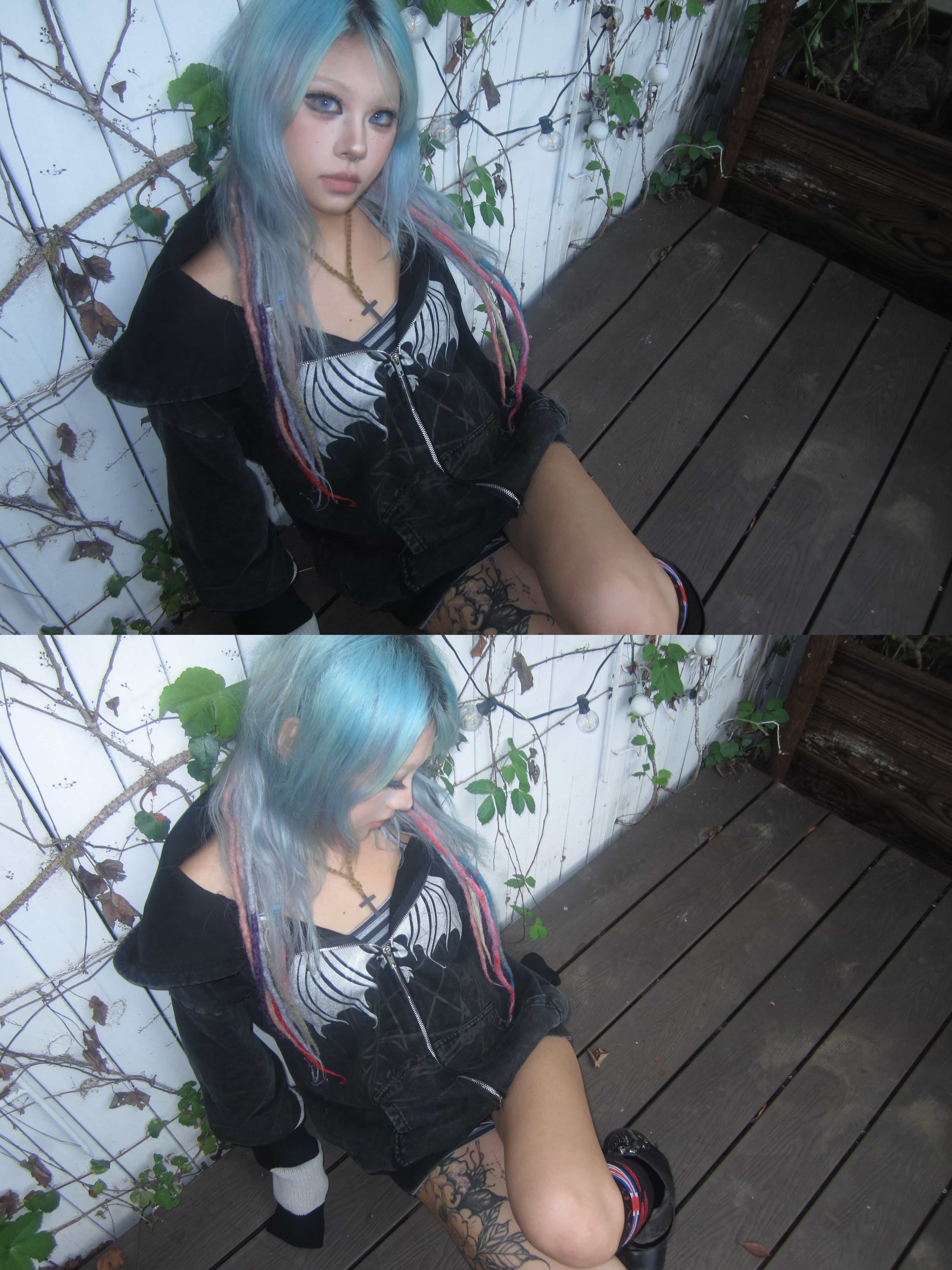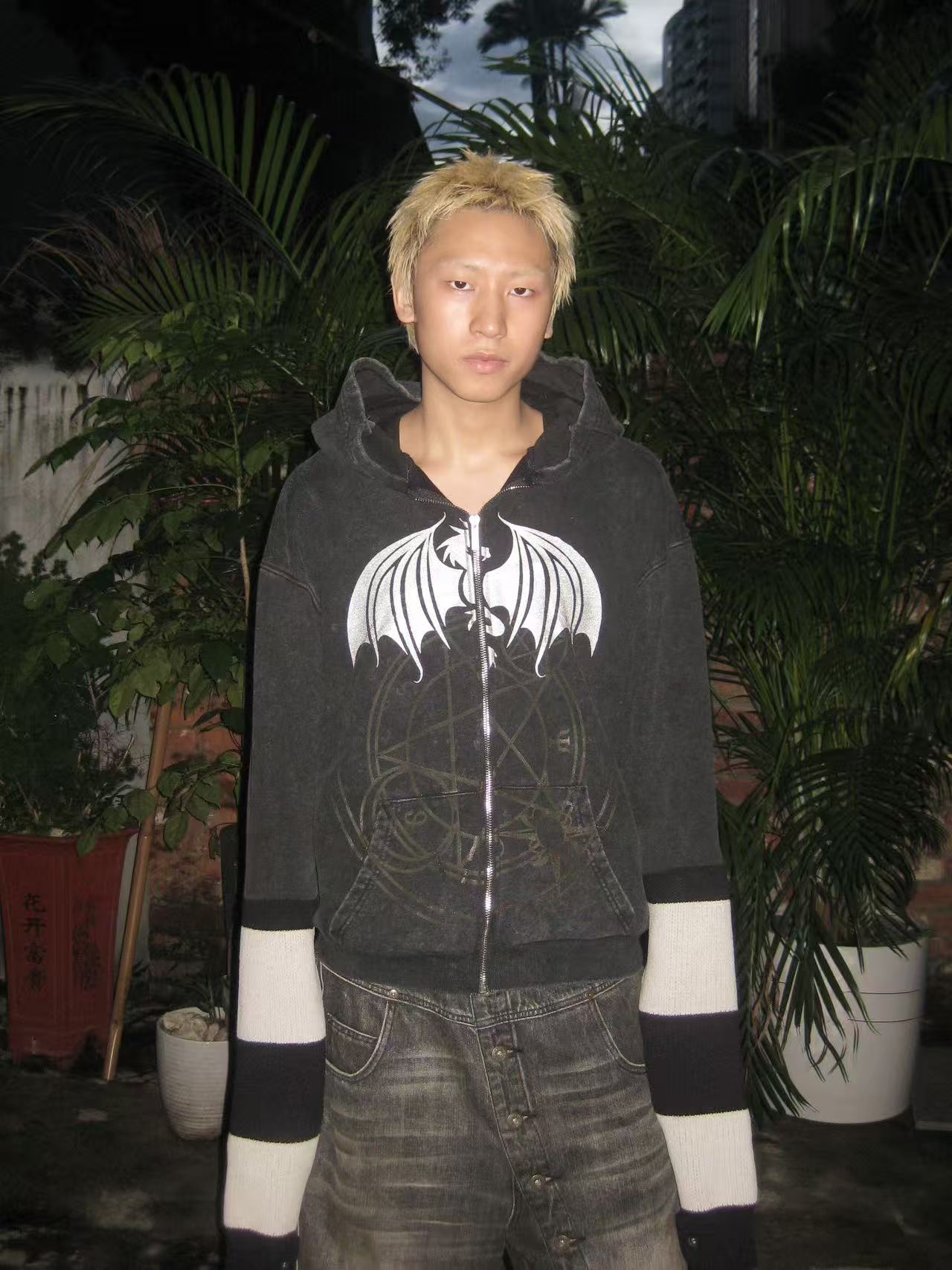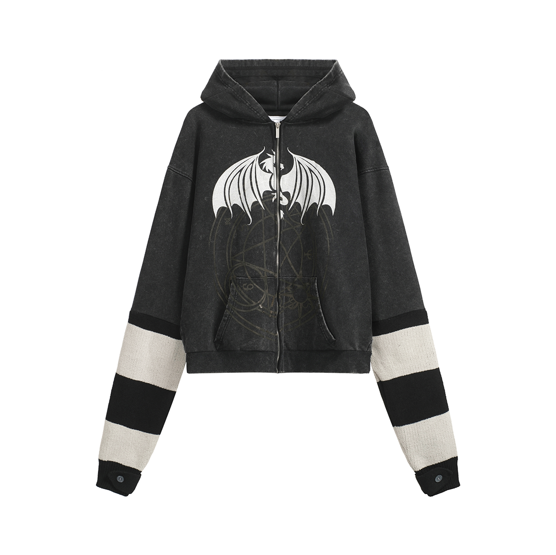 NOTHINGNESS WORLD | Silver Dragon Striped Oversized Hoodie Skip to content