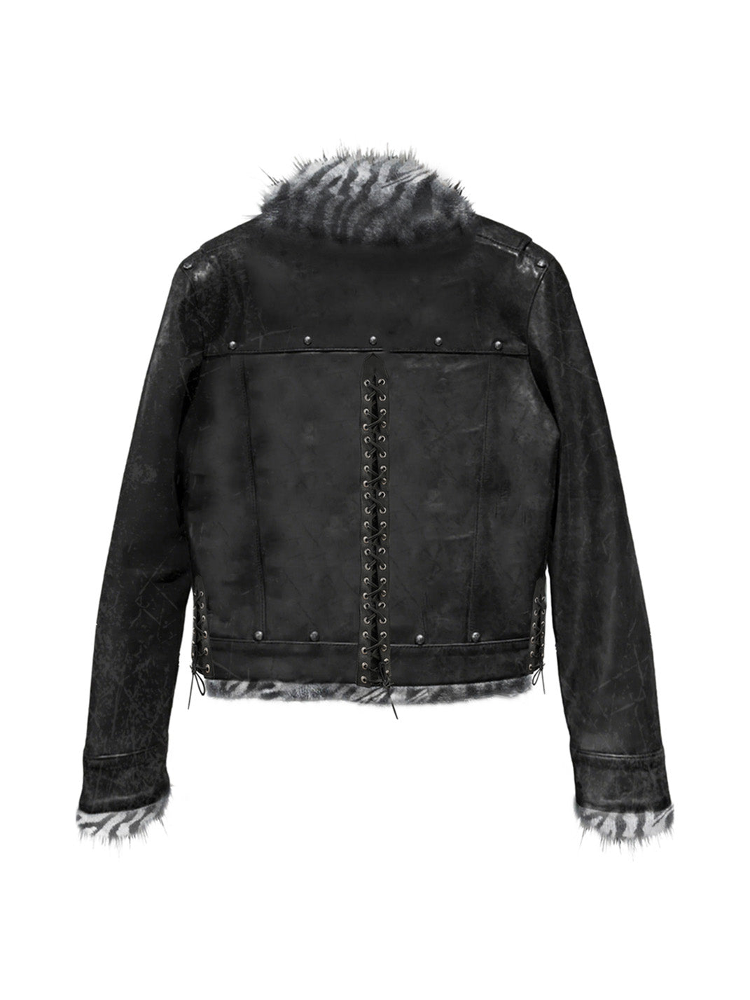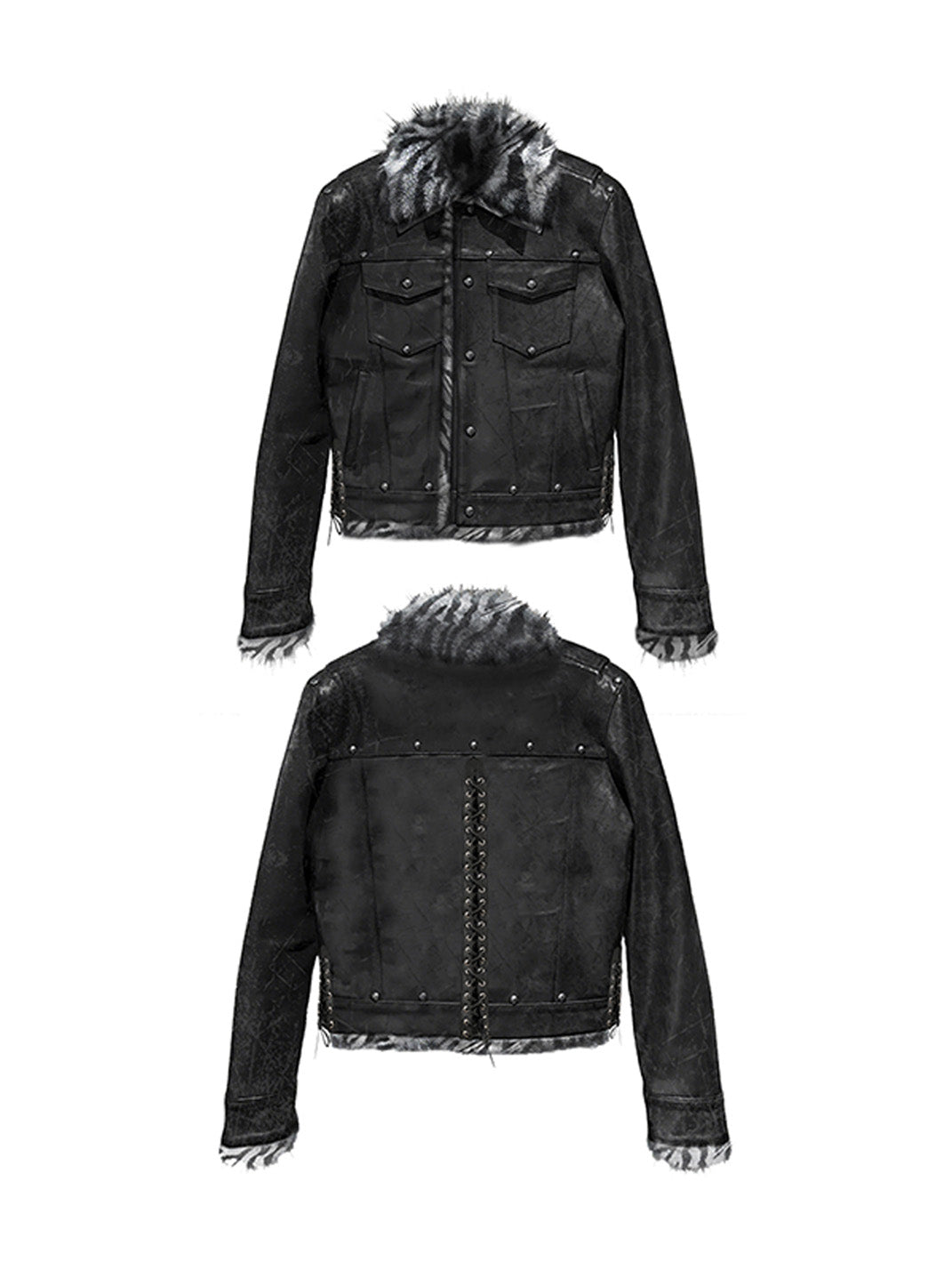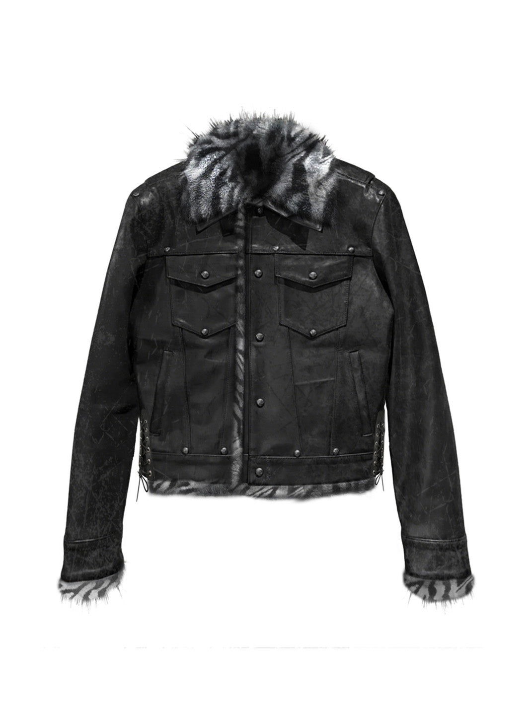 PAIKI | Dark Roar Punk Tiger Print Fur Collar Leather Jacket Skip to content