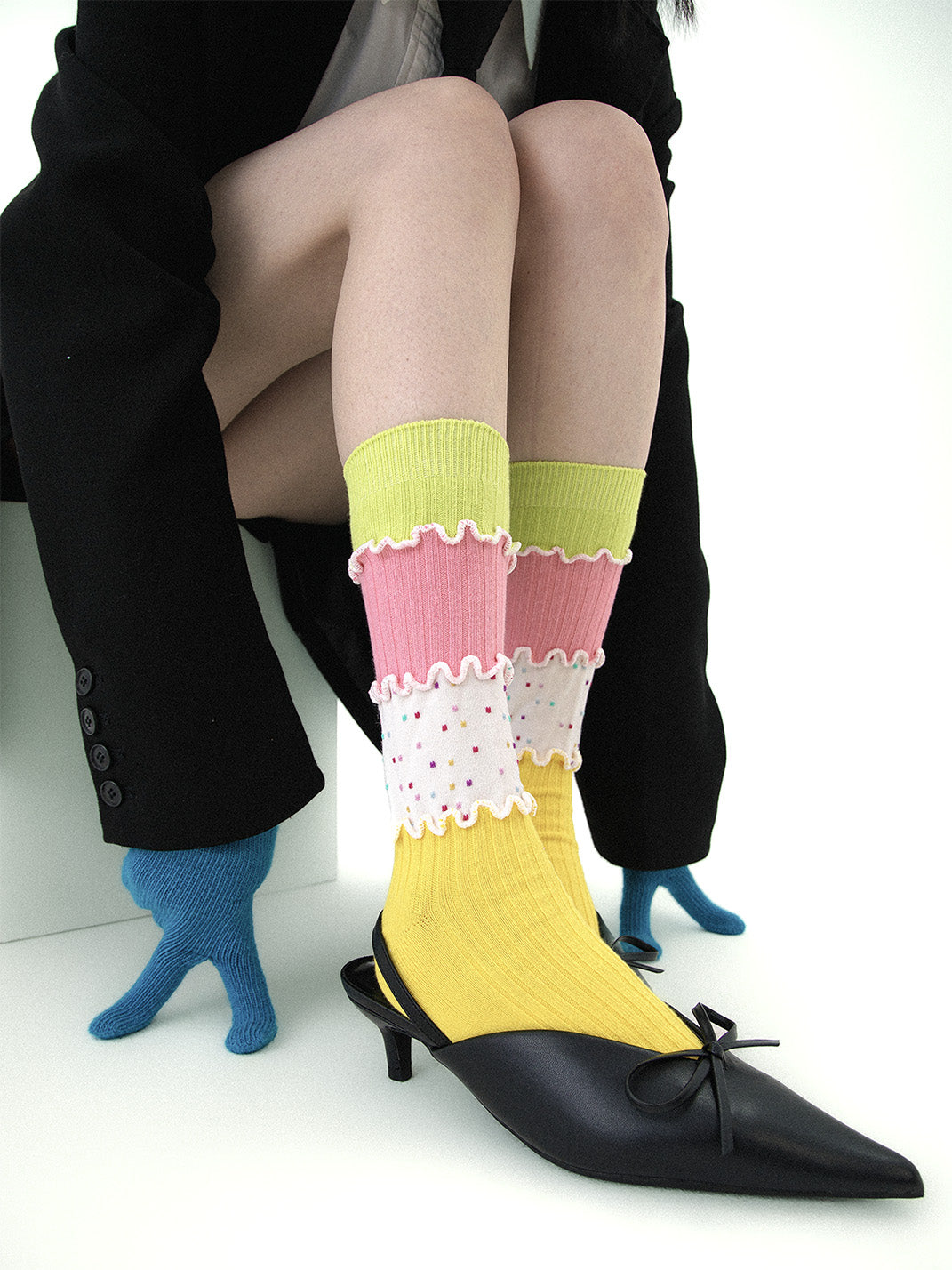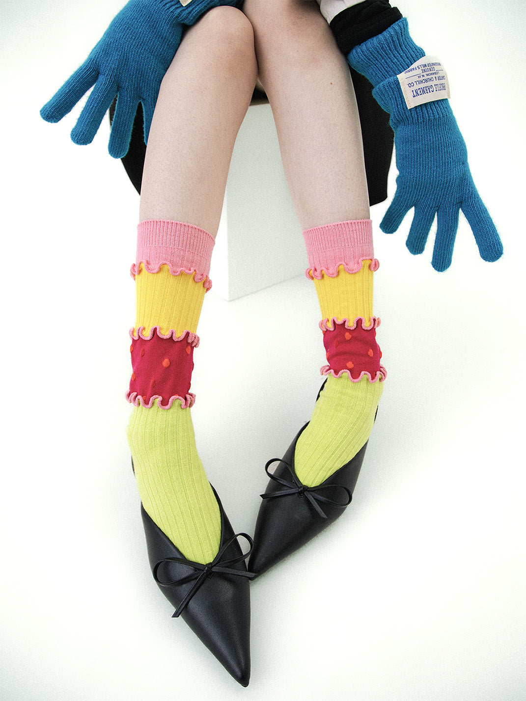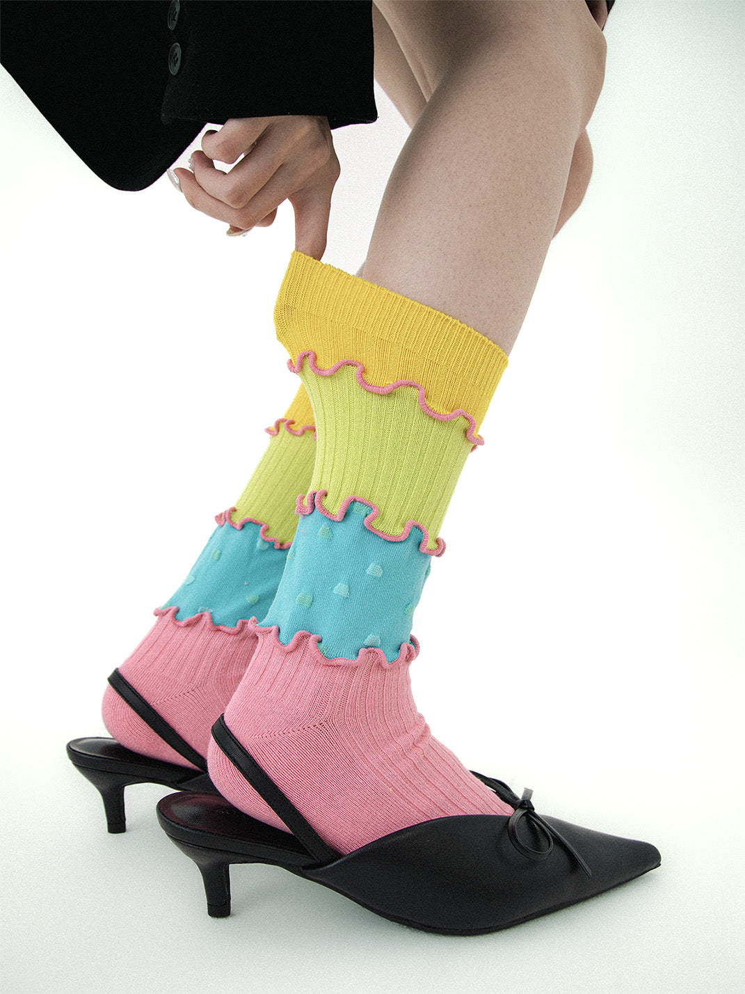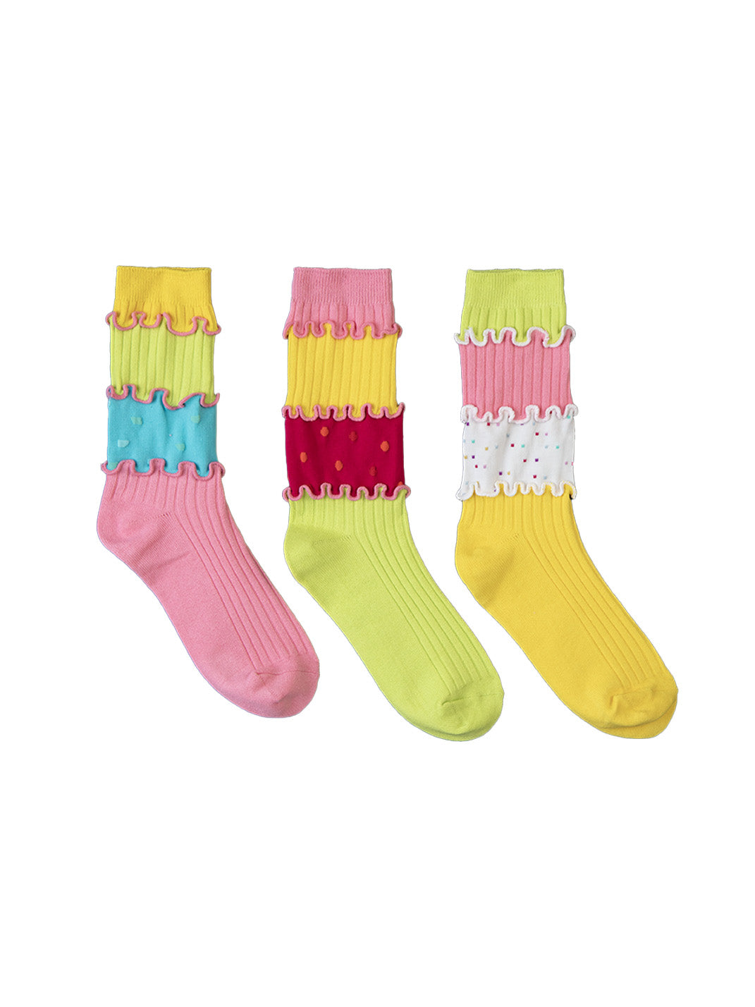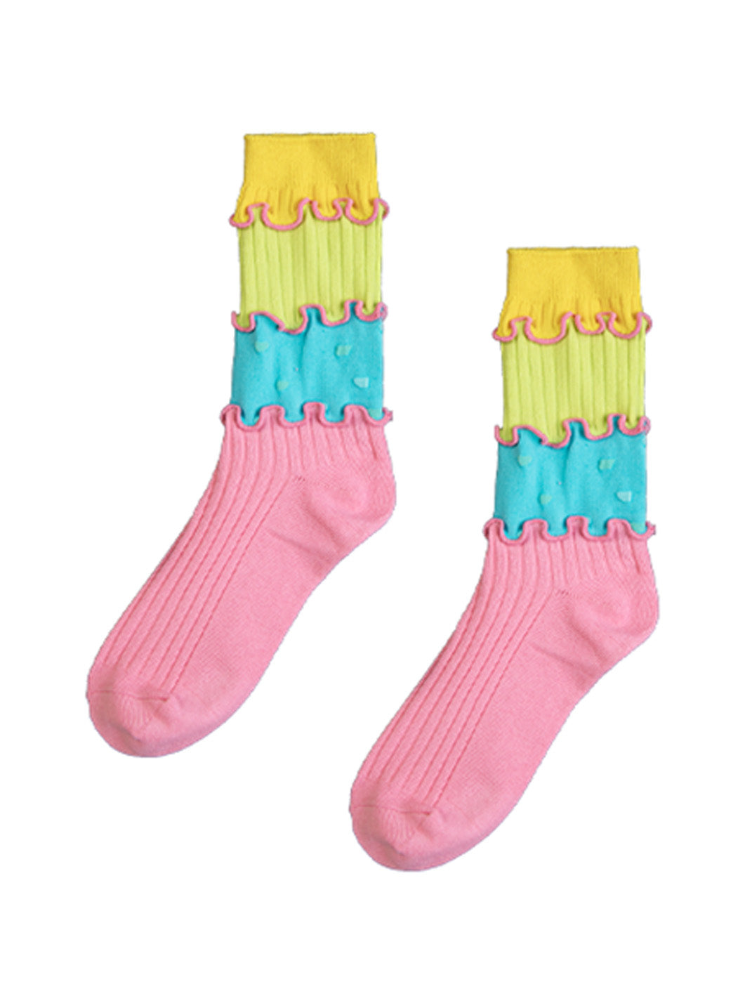 SS2L | Dopamine Layered Stitching Macaron Ruffled Mid-Calf Socks Skip to content
