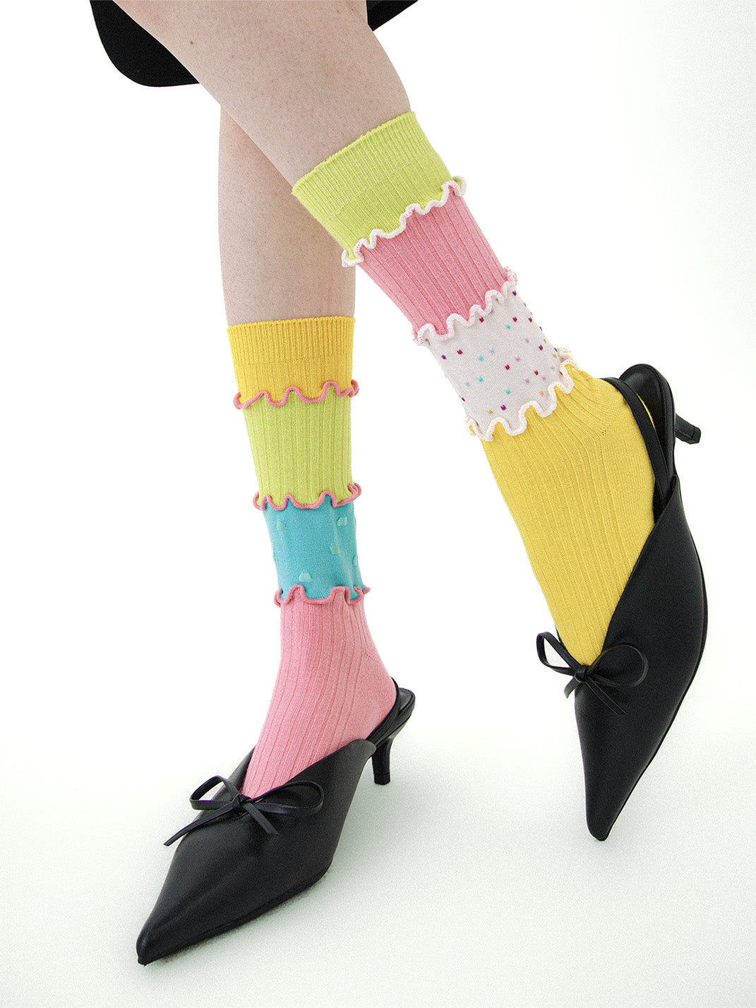 SS2L | Dopamine Layered Stitching Macaron Ruffled Mid-Calf Socks