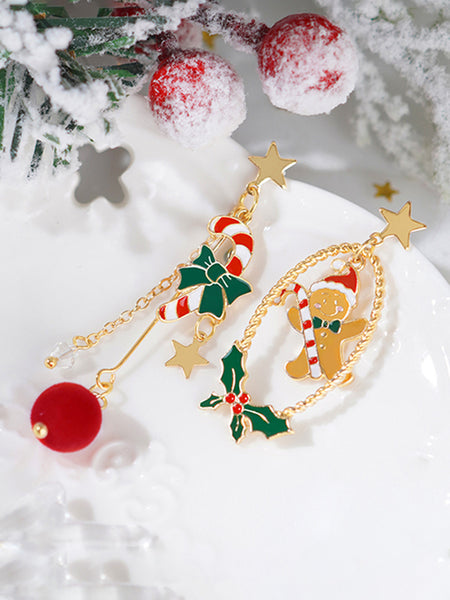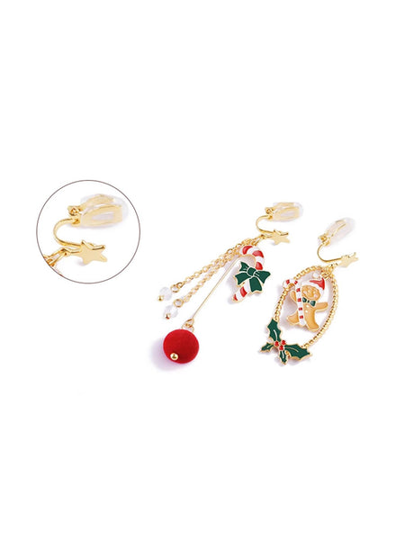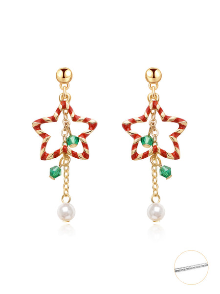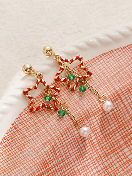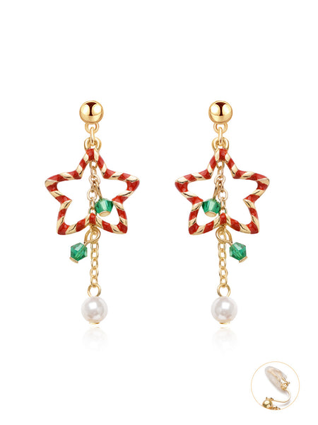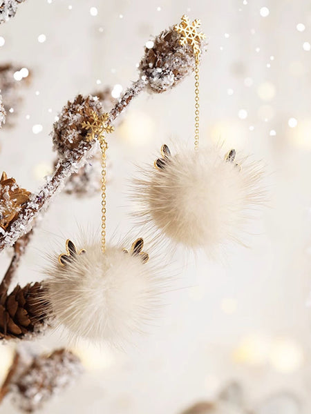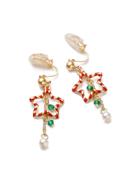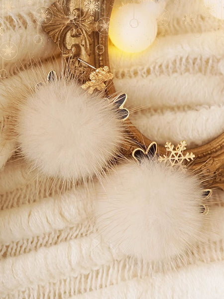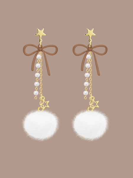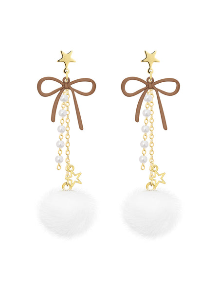 Xmas | Christmas Bow Star Pom-Pom Earrings