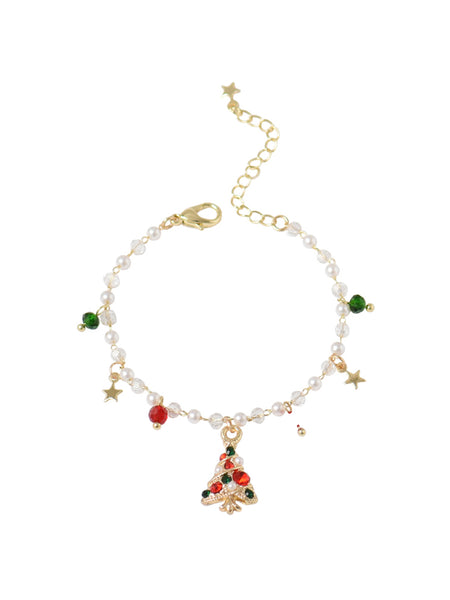 Xmas | Rhinestone Christmas Tree Pearl Bracelet