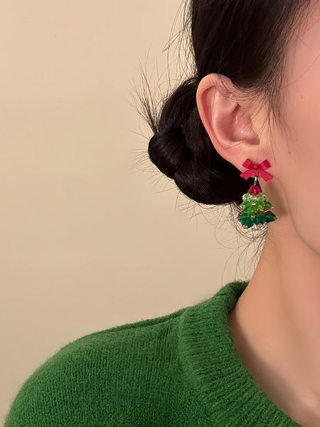 Xmas | Christmas Bowknot Sterling Silver Earrings
