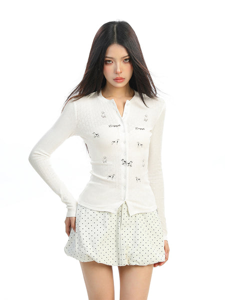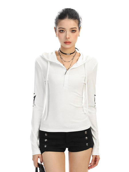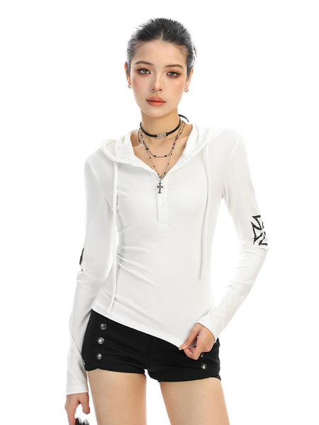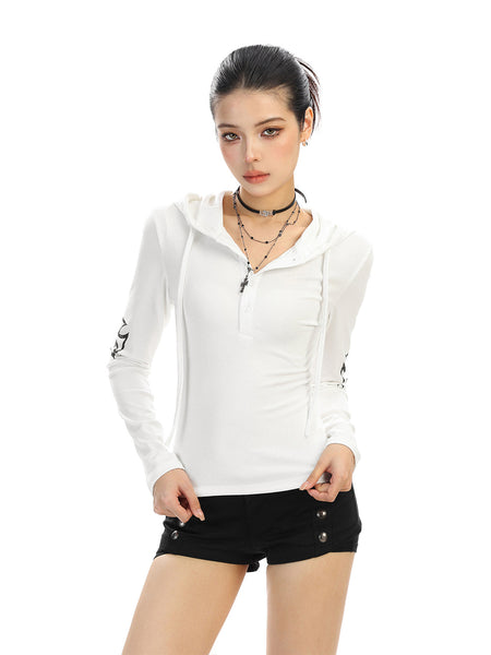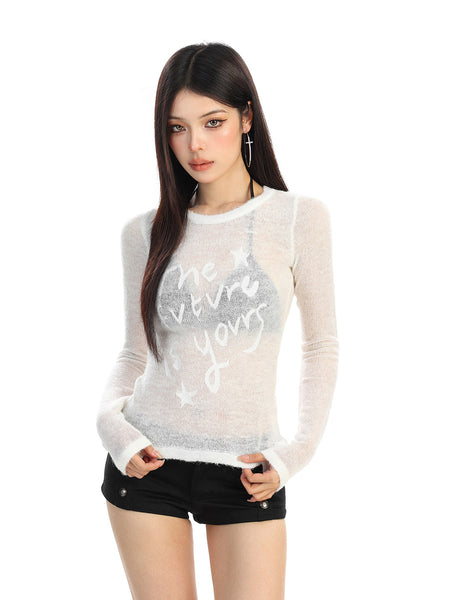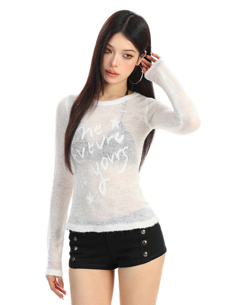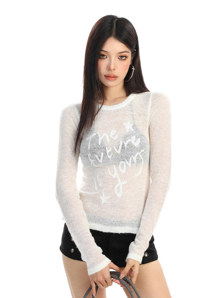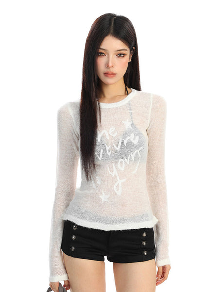 BIGGOLD | Hollow-Out Letter Print Long-Sleeved ...
