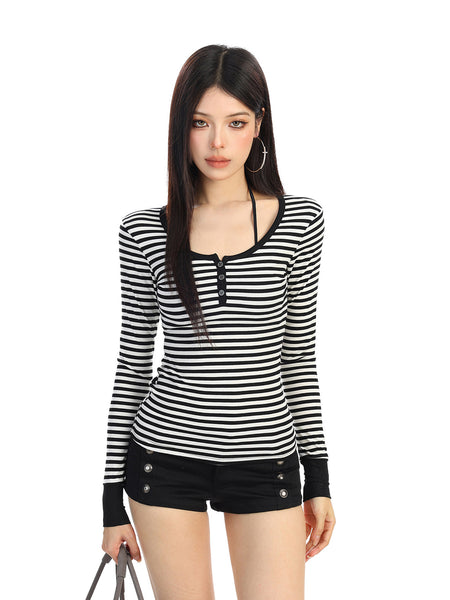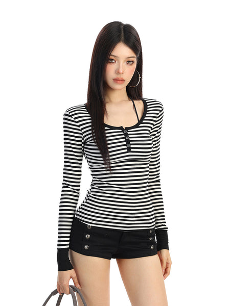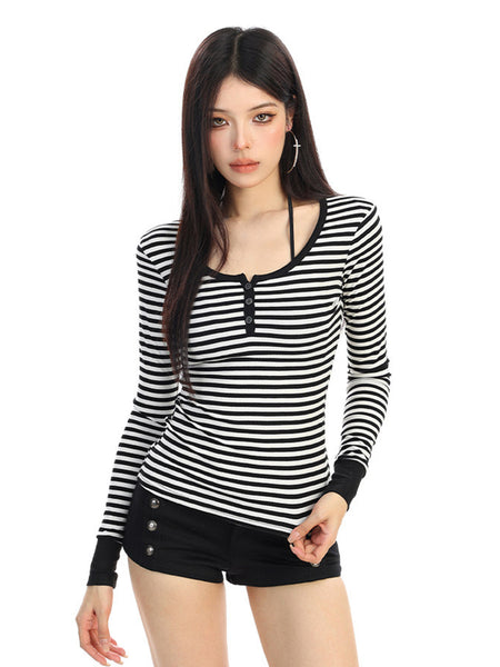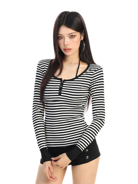 BIGGOLD | Y2K Striped Long-Sleeved T-Shirt