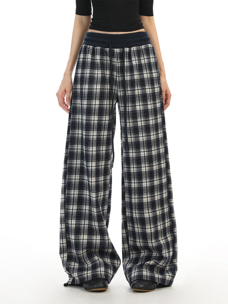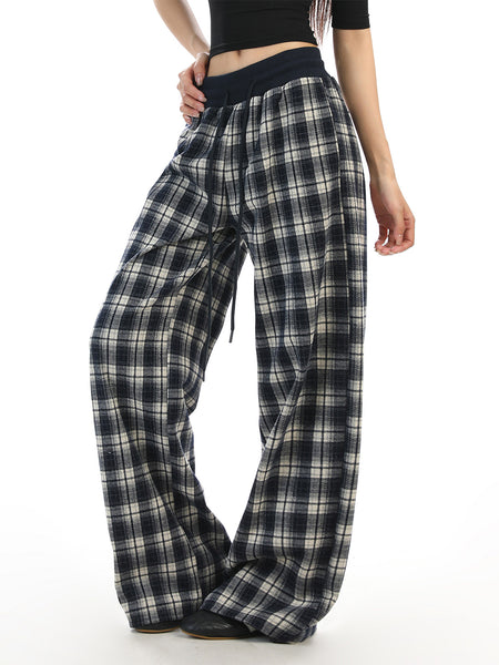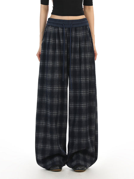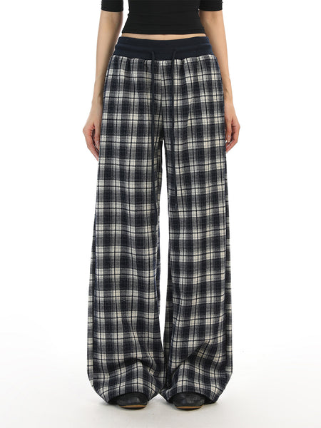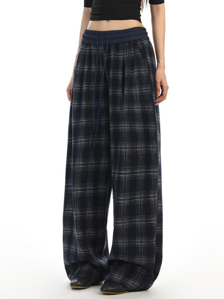 BIGGOLD | Fitted Plaid Straight-Leg Wide-Leg Pants