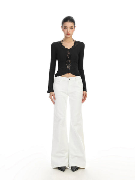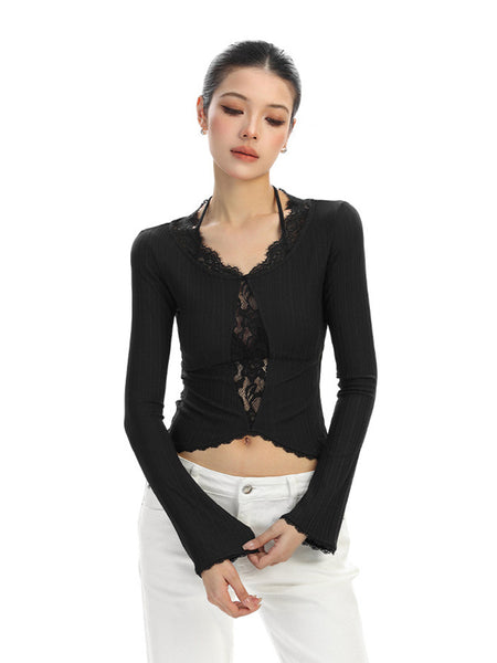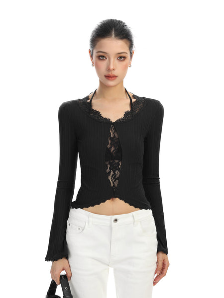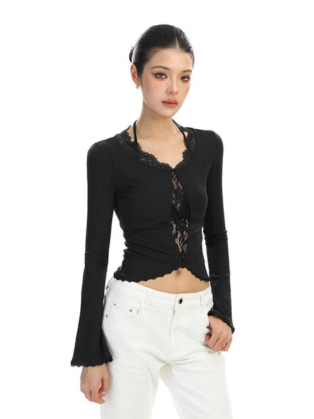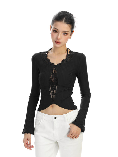BIGGOLD | Lace-Trimmed Irregular Long-Sleeved T...
