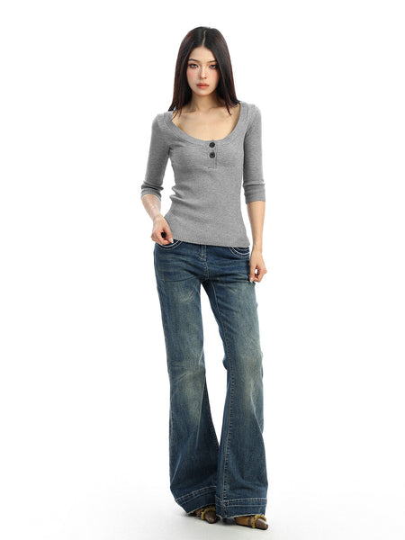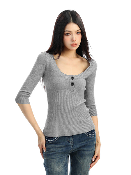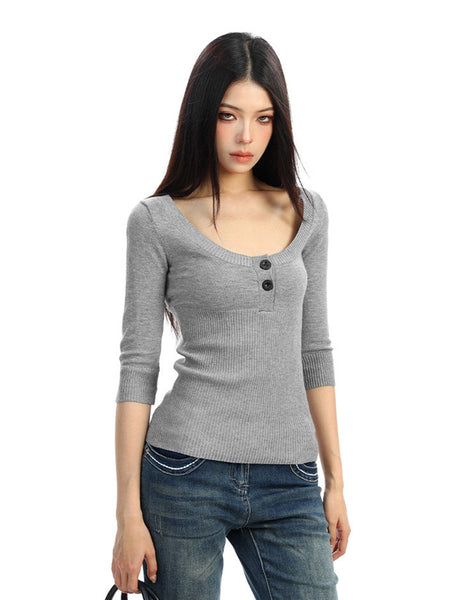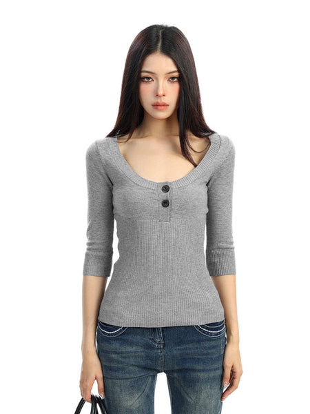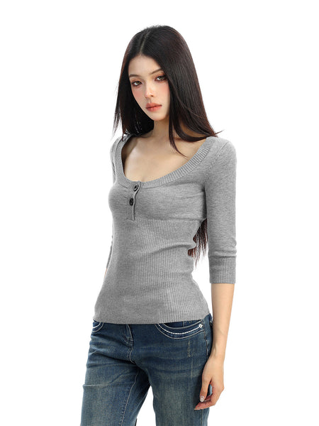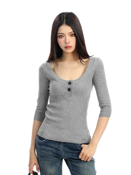 BIGGOLD | U-Neck Three-Quarter Sleeve Knit Top