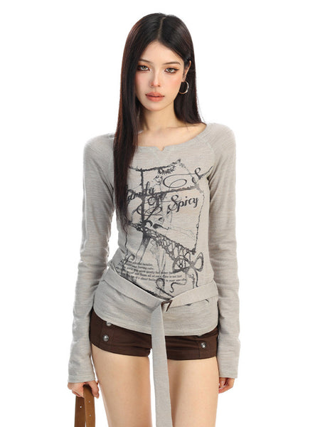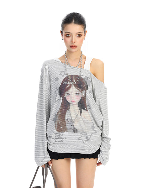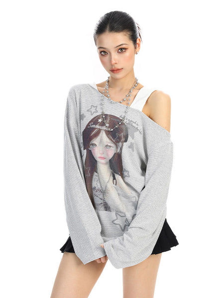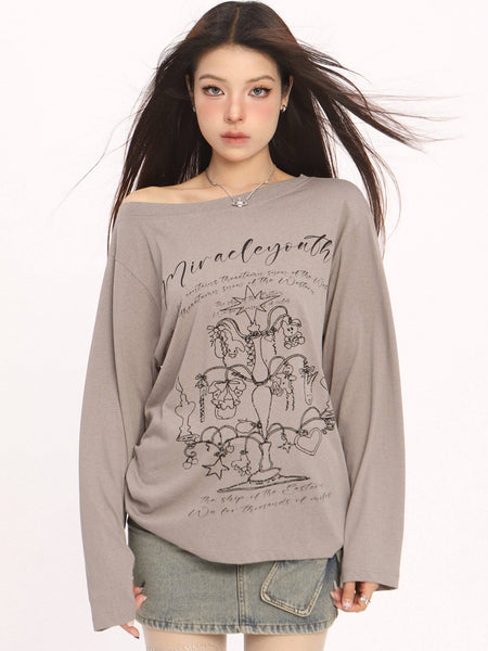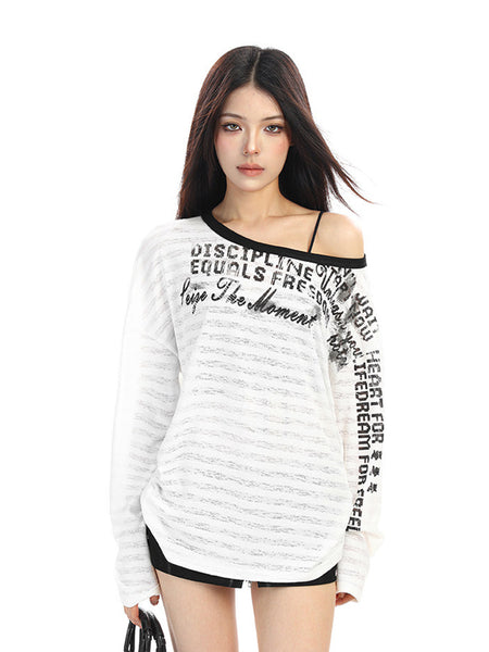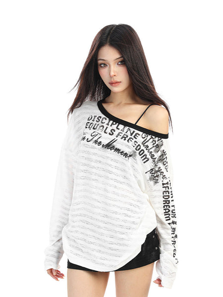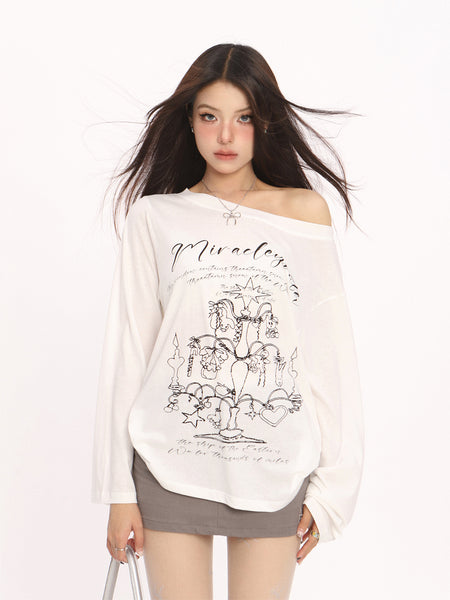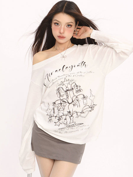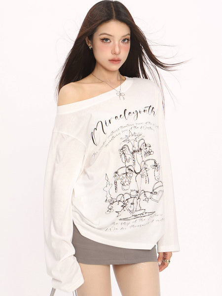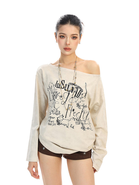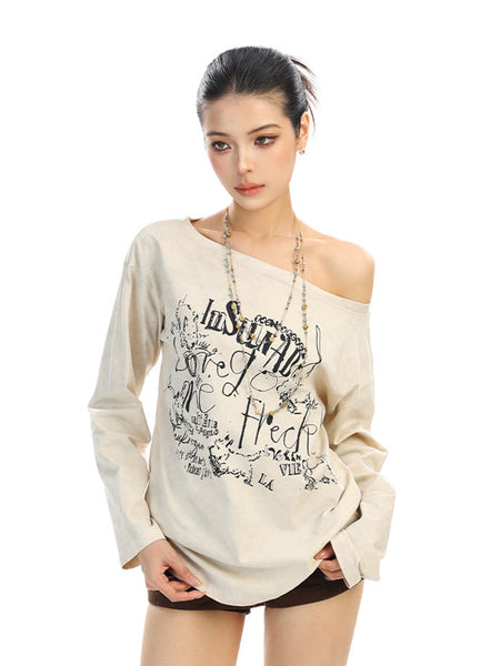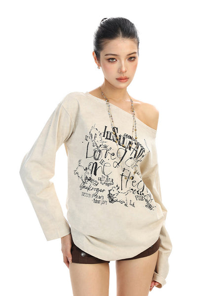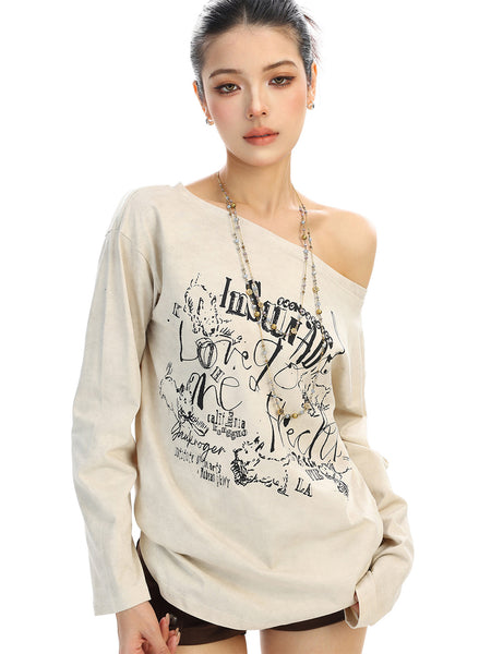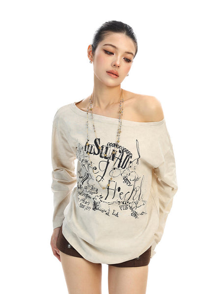 BIGGOLD | Graffiti Off-Shoulder Thin T-Shirt