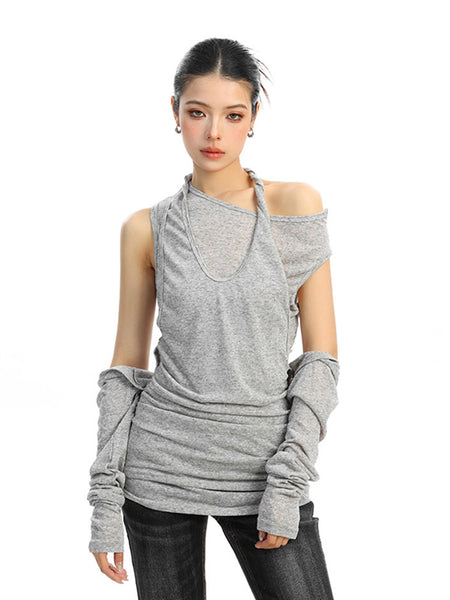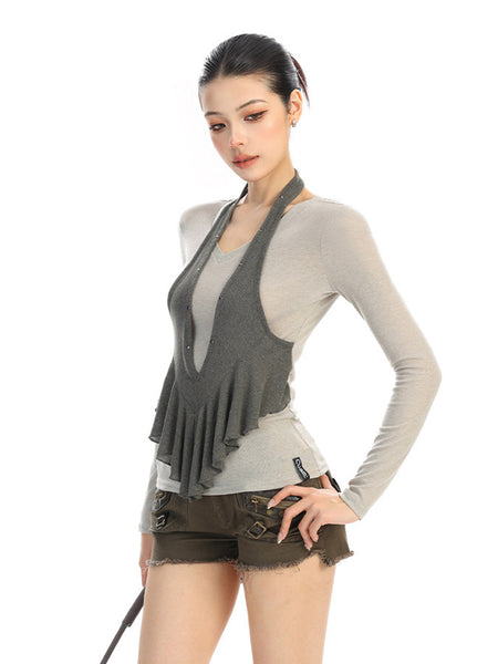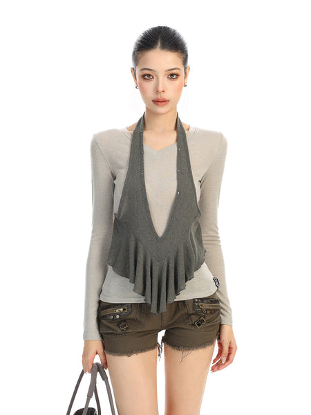 BIGGOLD | Hollow-Out Off-Shoulder Halter Top