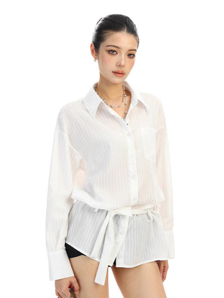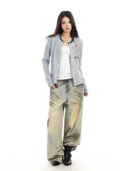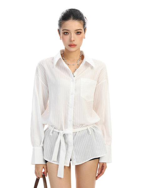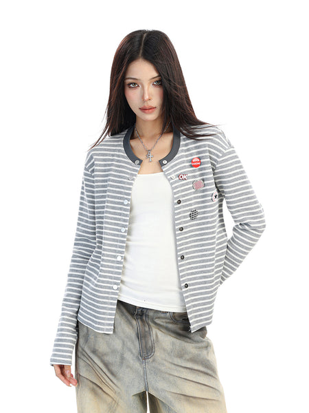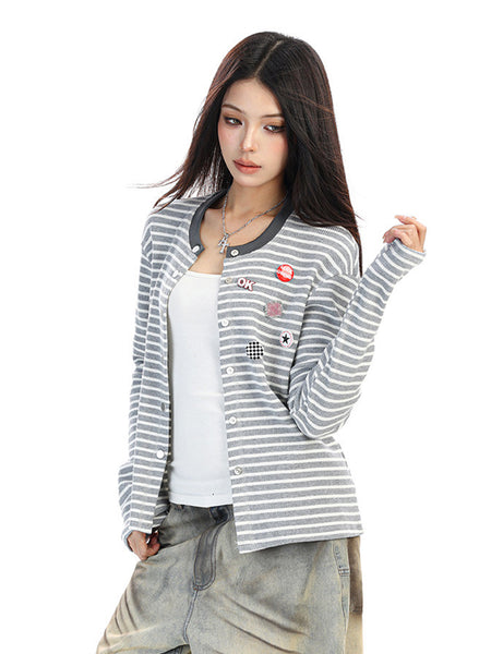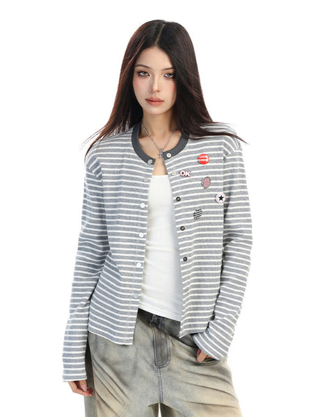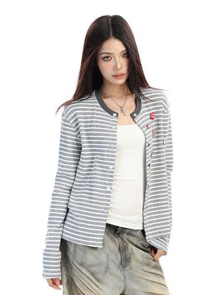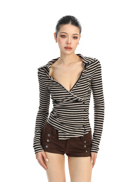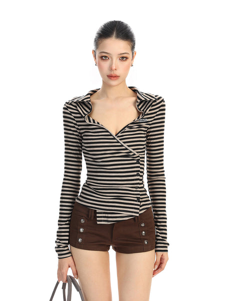 BIGGOLD | Irregular Button Striped Long-Sleeved...