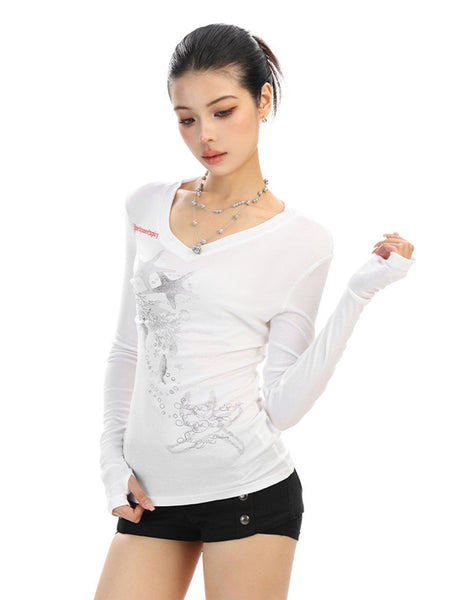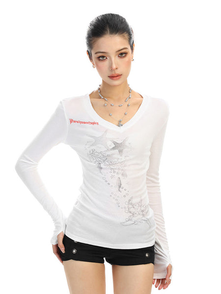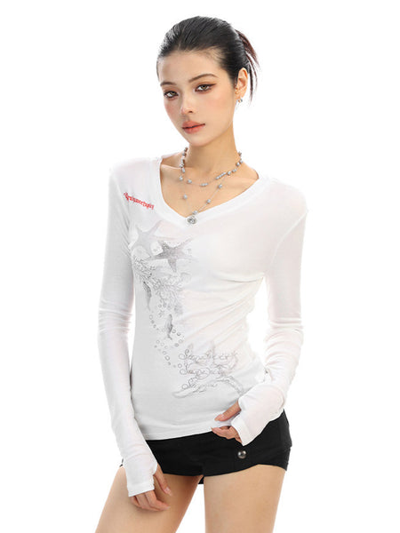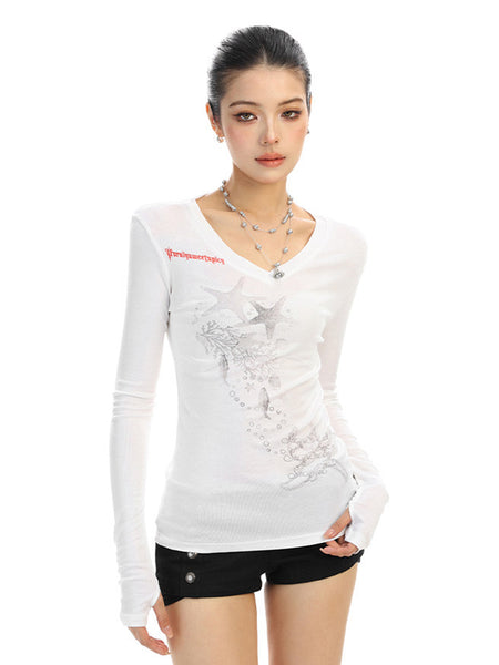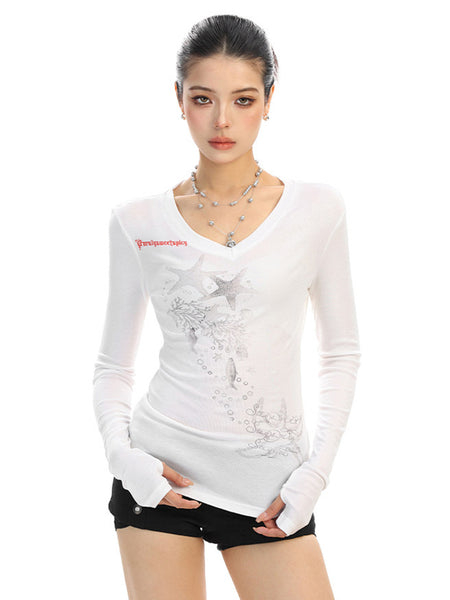 BIGGOLD | Starfish Print V-Neck Long-Sleeve T-S...