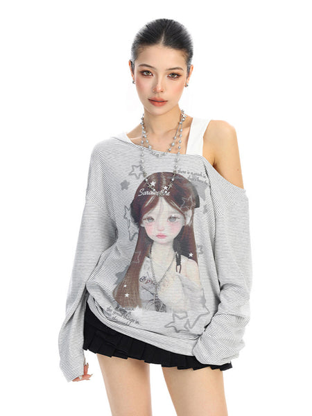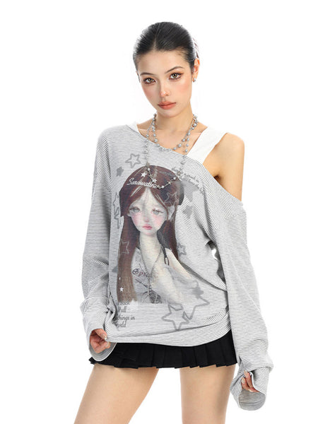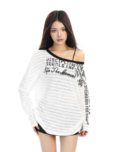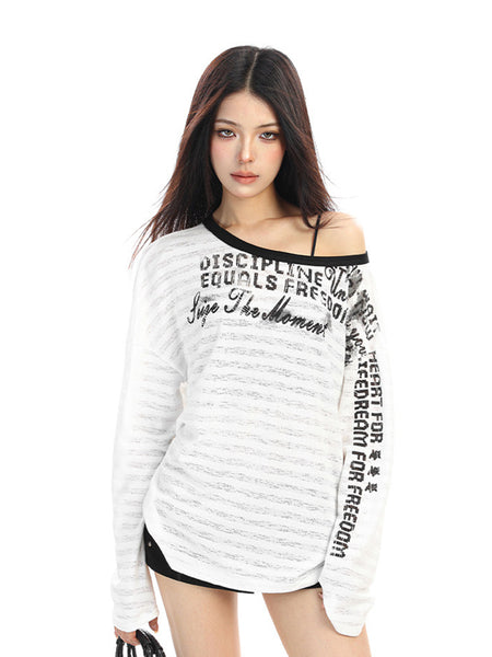 BIGGOLD | Letter Graffiti Off-Shoulder Long-Sle...