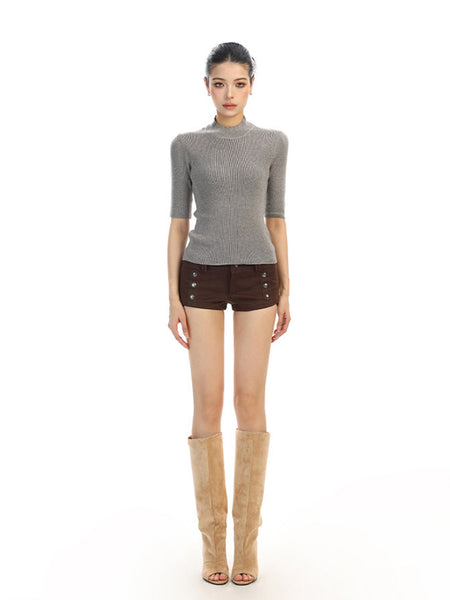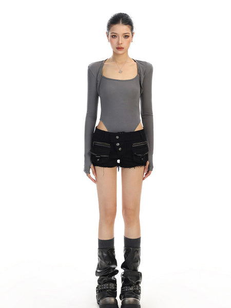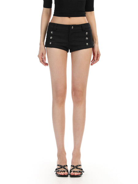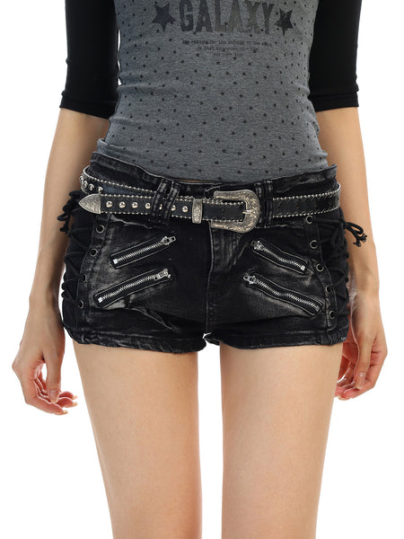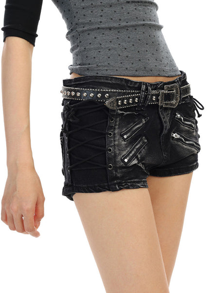 BIGGOLD | Lace-Up Zipper Low-Rise Denim Shorts