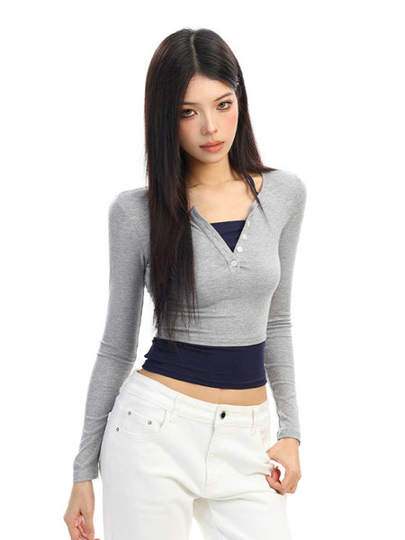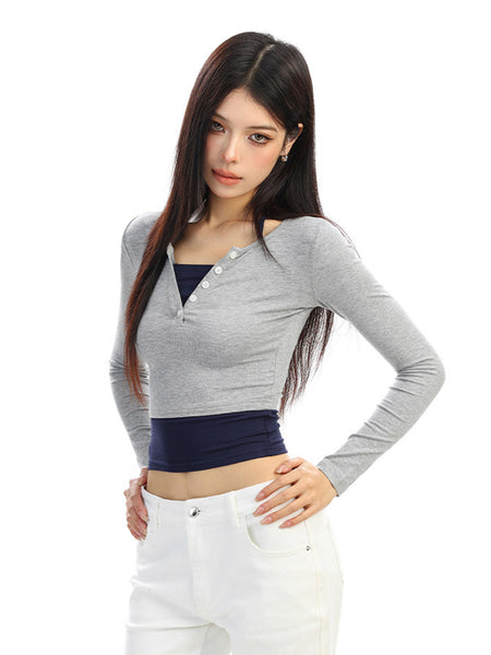 BIGGOLD | Printed Faux Two-Piece Long-Sleeved Top