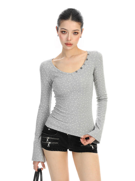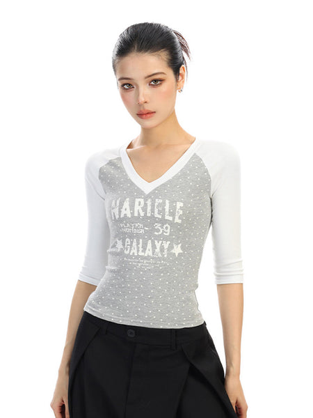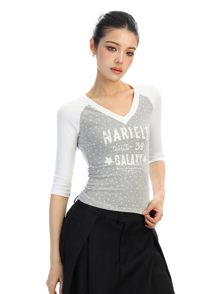 BIGGOLD | Polka Dot V-Neck Short-Sleeved T-Shirt