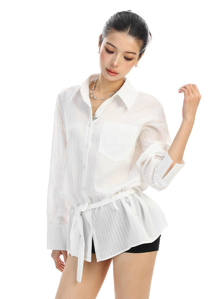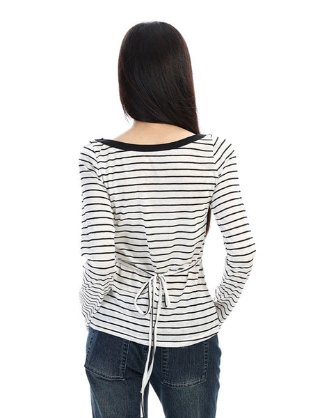 BIGGOLD | Tie-Waist Striped V-Neck Long-Sleeved...