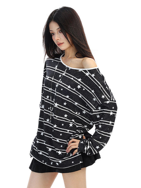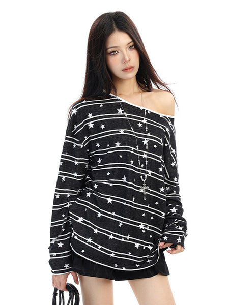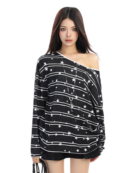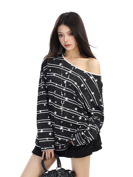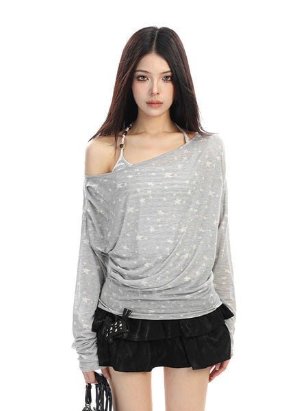 BIGGOLD | All-Over Star Print Off-Shoulder Top