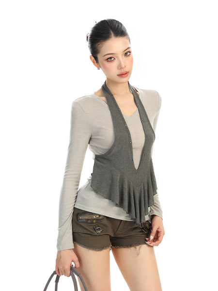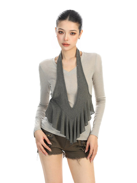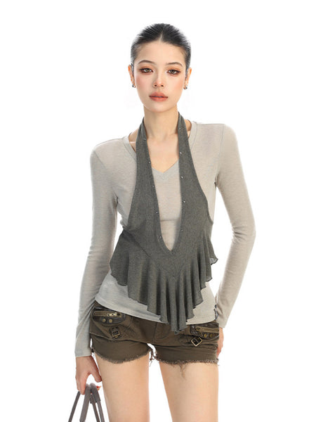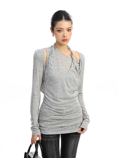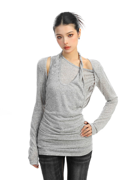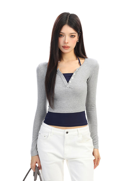 BIGGOLD | Faux Two-Piece Halter Neck Long-Sleev...