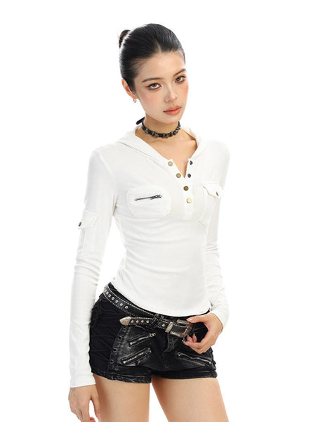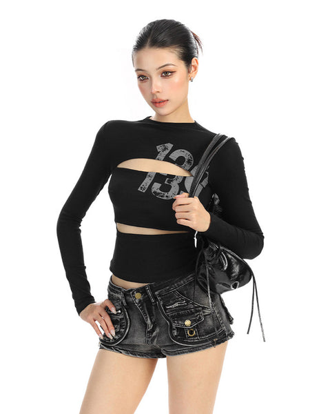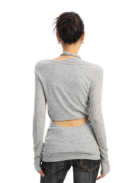 BIGGOLD | Hollow-Out Backless Long-Sleeved T-Shirt
