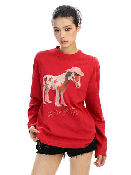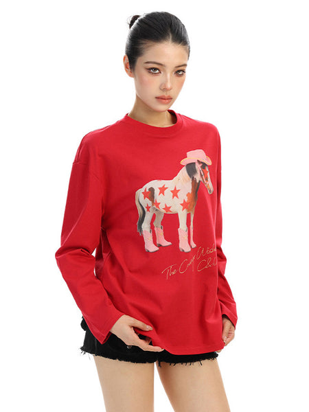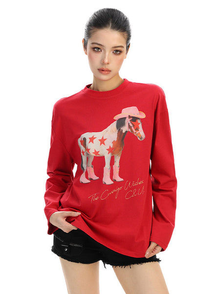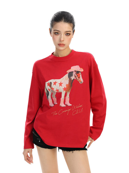 BIGGOLD | Pony Graffiti Print Crew Neck Long-Sl...