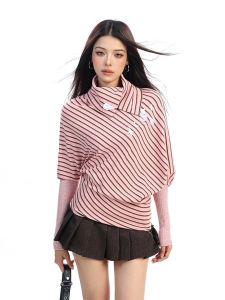 BIGGOLD | Irregular Striped Turtleneck Long-Sle...