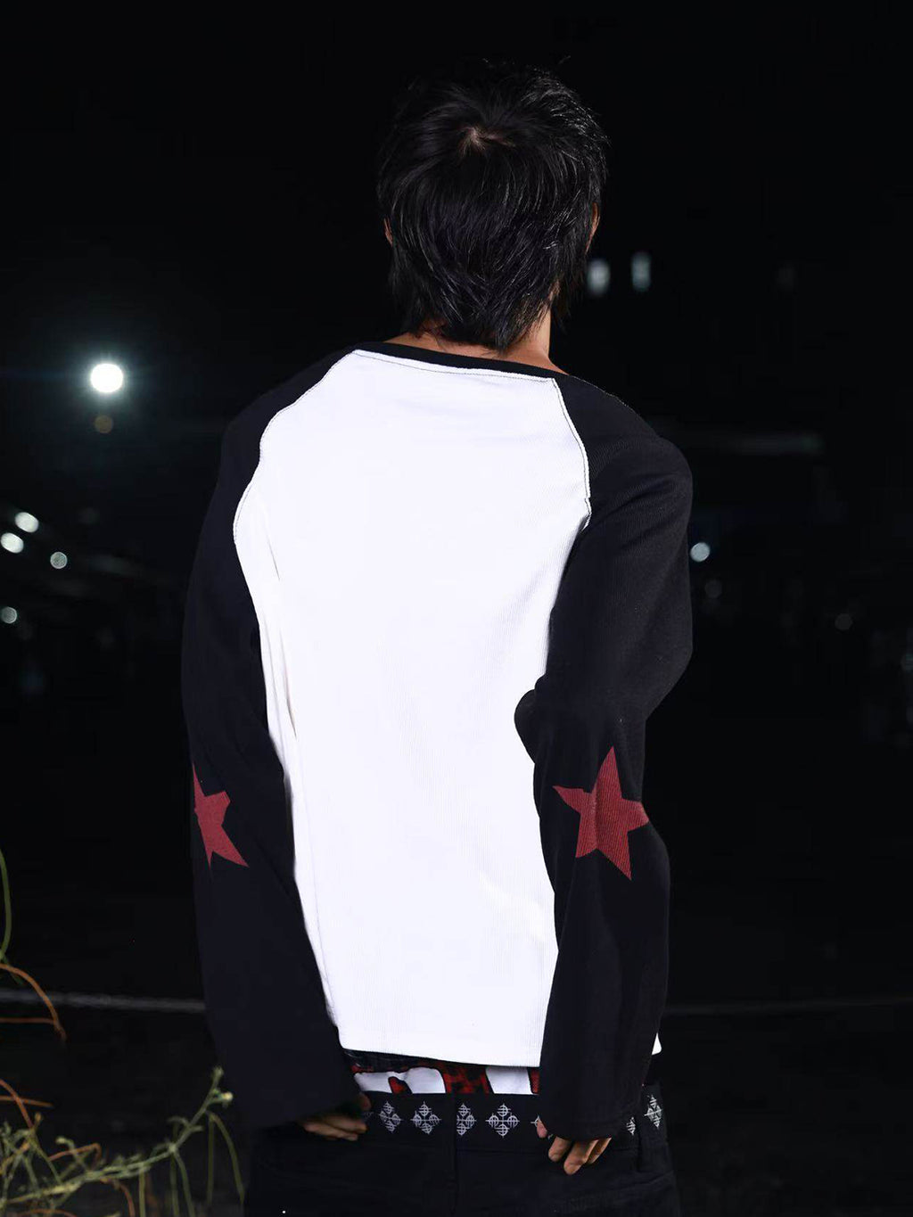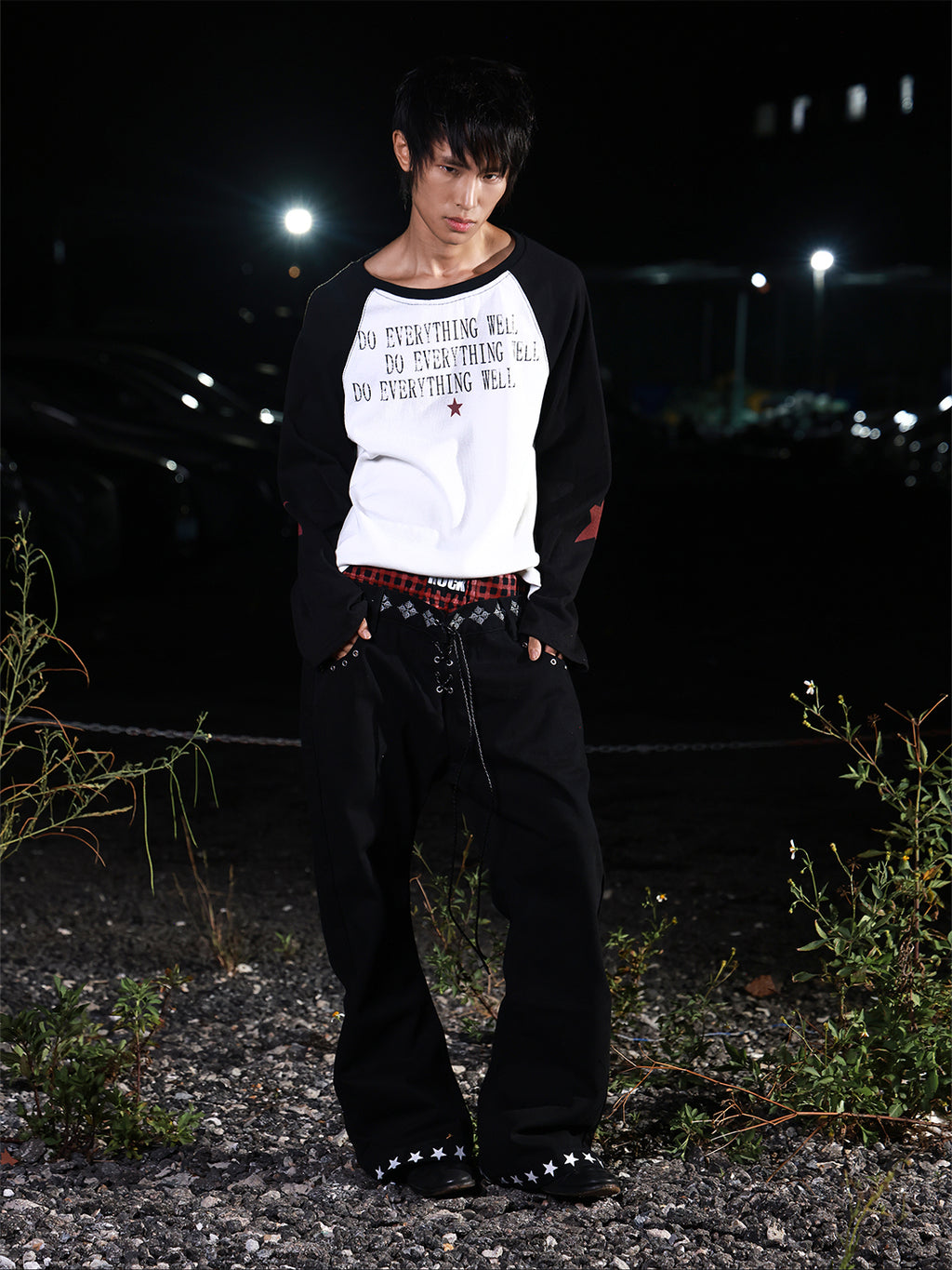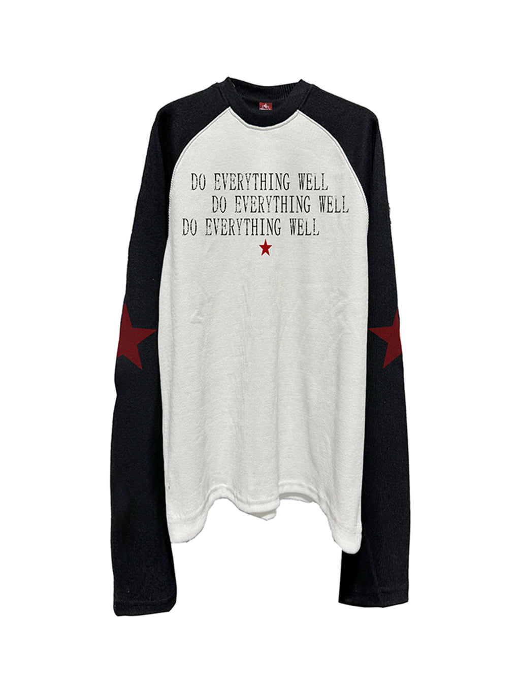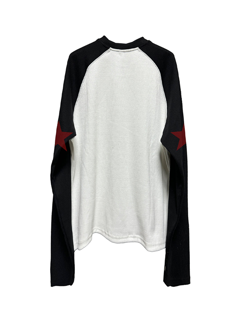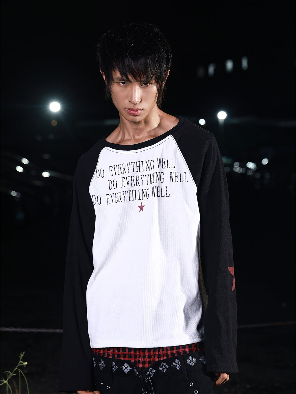 DETW | Ribbed Star Slogan Raglan Sleeves Top