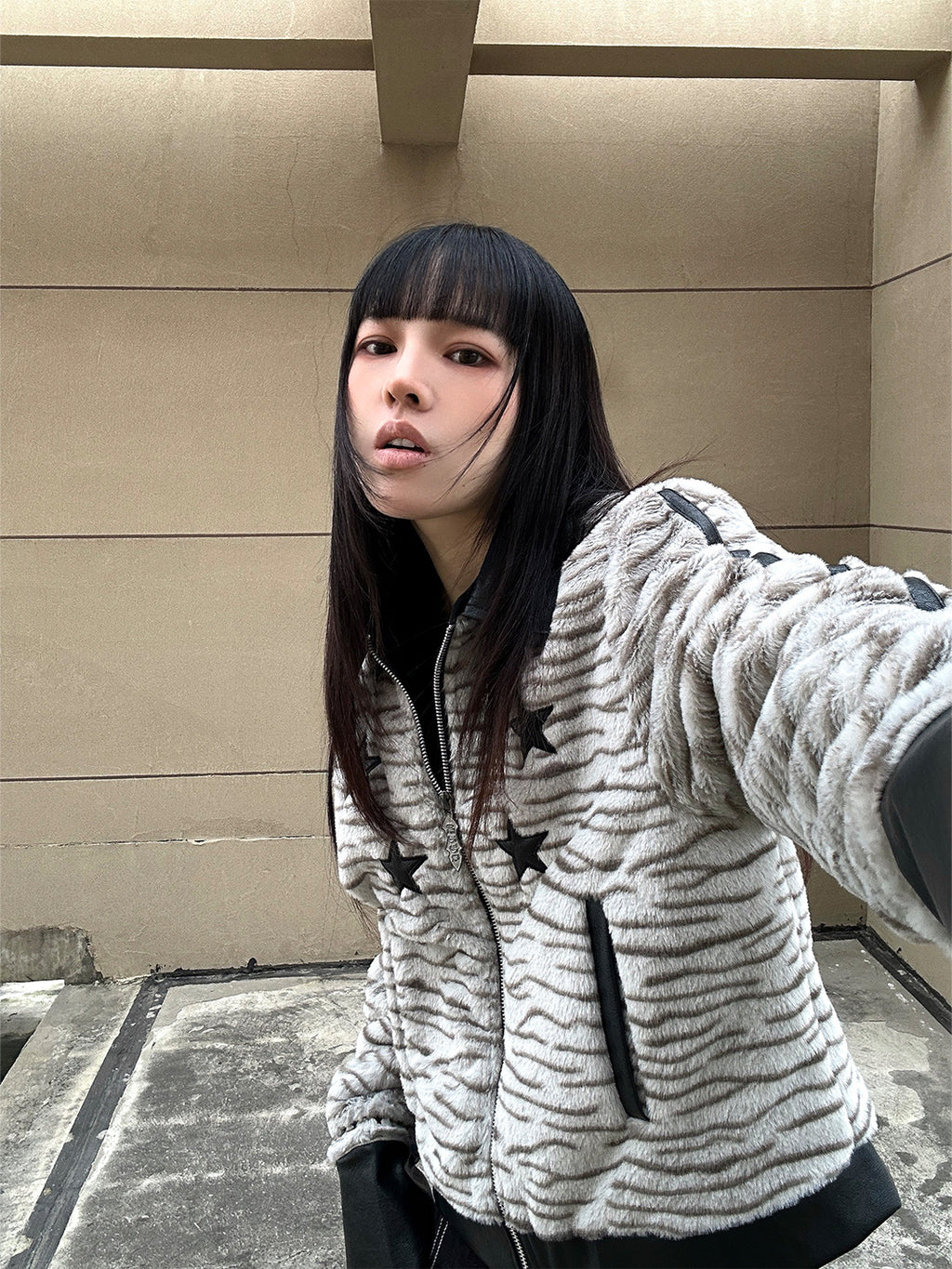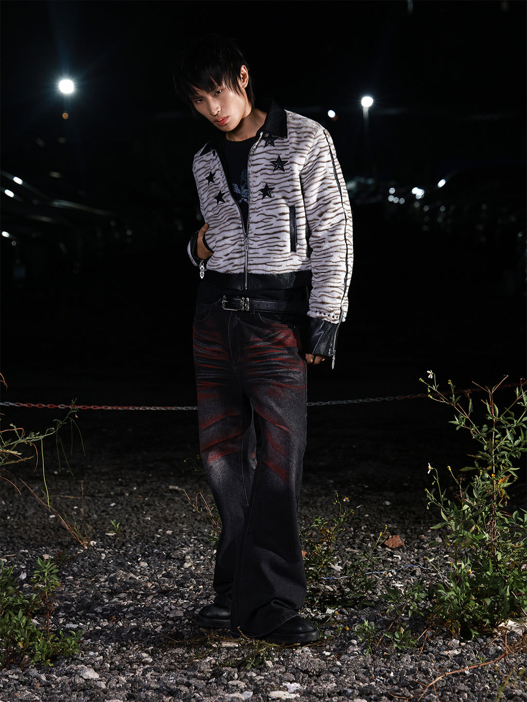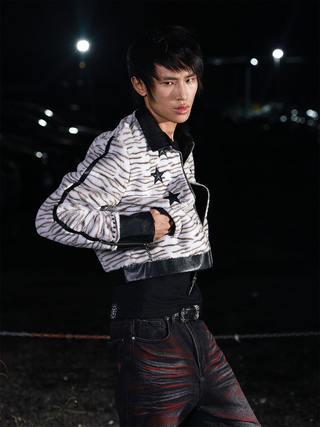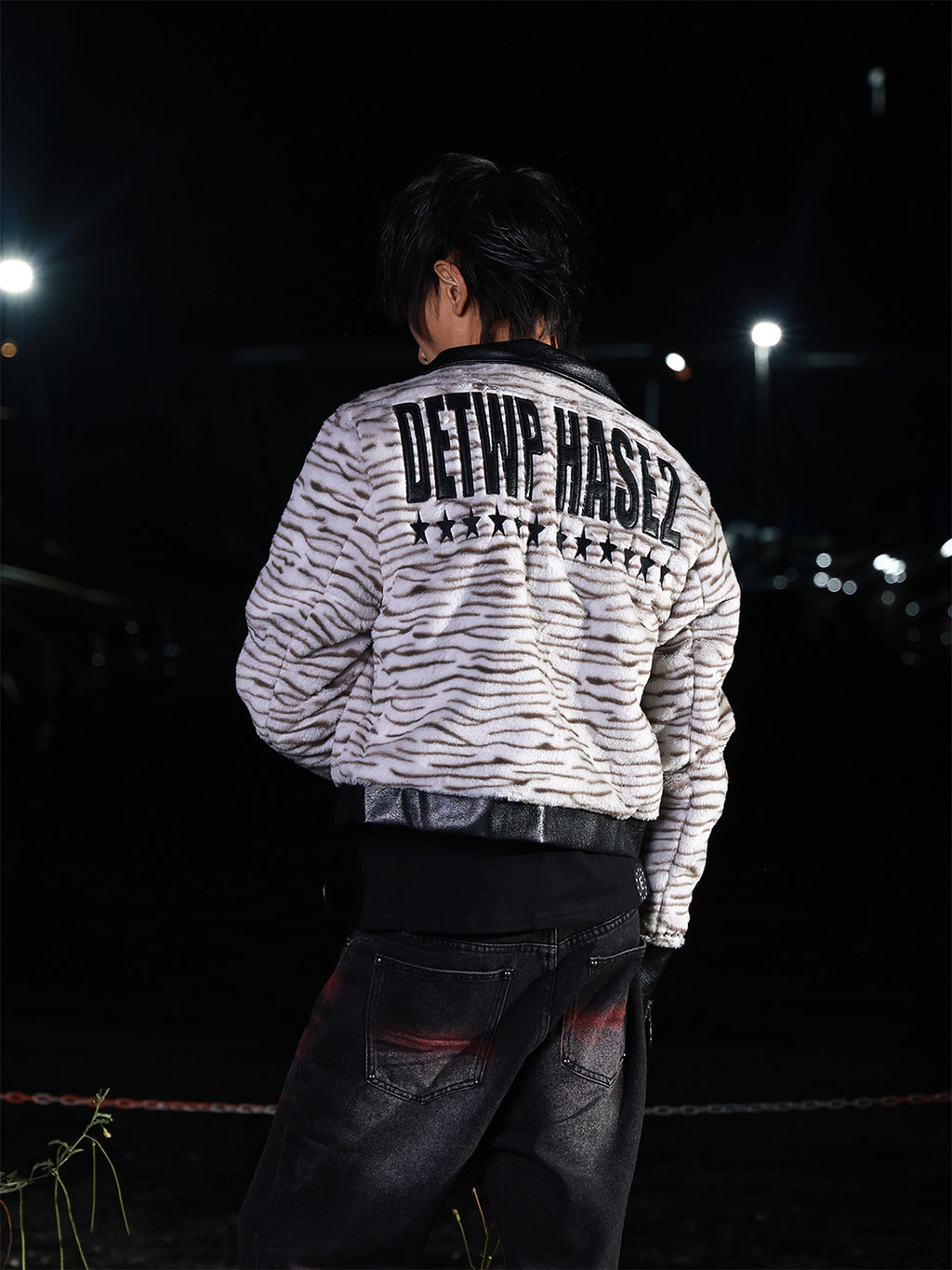 DETW | Tiger Stripe Patchwork Lapel Jacket Skip to content