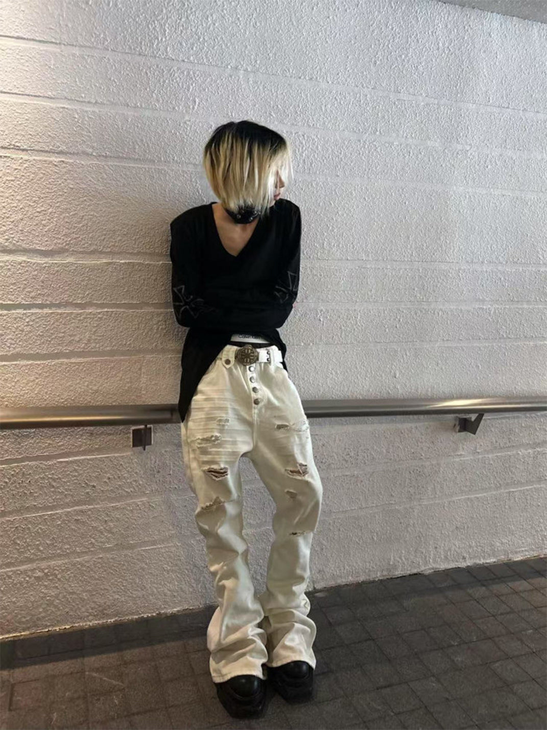 DETW | V-Neck Swallowtail Long Sleeve Top