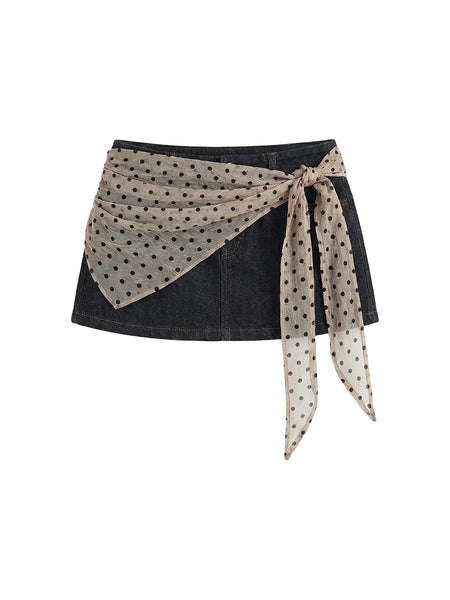 2th Desire | Detachable Polka Dot Scarf Skirt Suit
