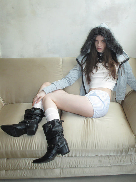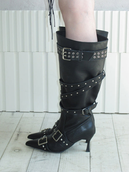 Mooreyu Atelier | Retro Buckle High-Heeled Boots