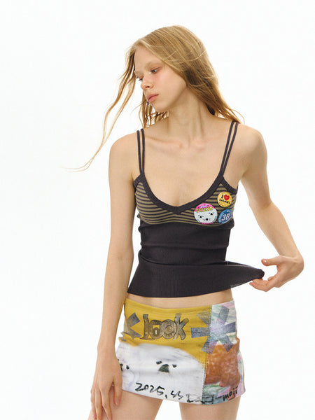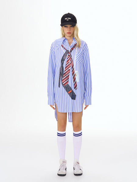 DeleteEX | Graffiti Print Striped Long-Sleeve S...