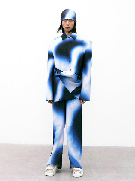 GUSHPSYCHIC | Blue Gradient Lapel Casual Suit P...
