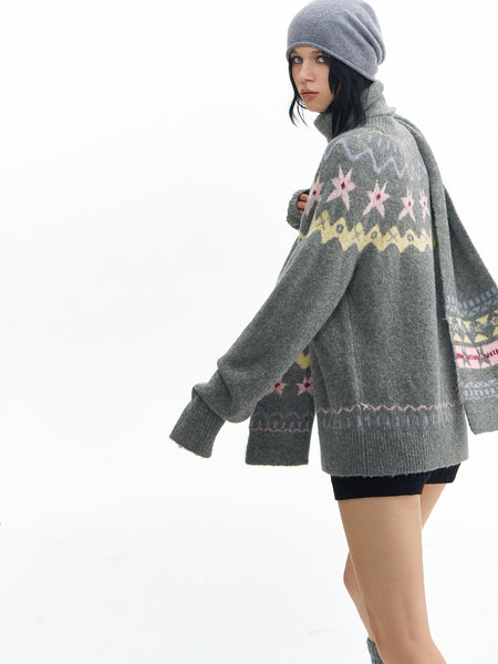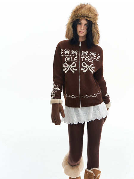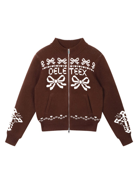 DeleteEX | Retro Jacquard Crew Neck Cardigan