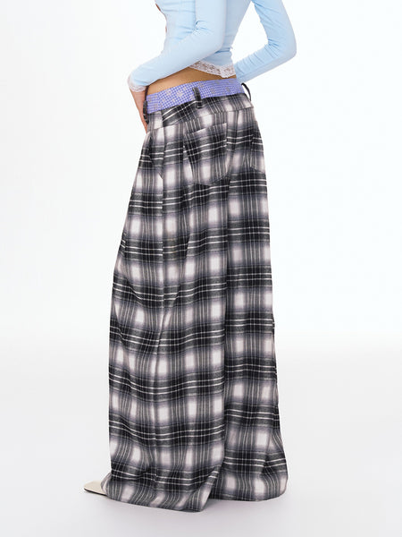DeleteEX | Faux Two-Piece Plaid Wide-Leg Pants