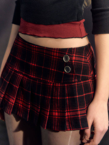 DeleteEX | Low-Waisted Plaid Pleated Skirt