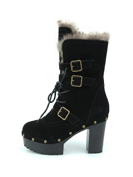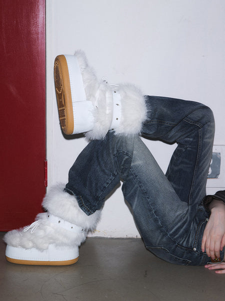 Mooreyu Atelier | Retro Lace-Up Fleece-Lined Hi...