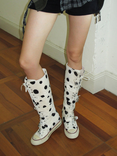Mooreyu Atelier | White Polka Dot Lace-Up Boots