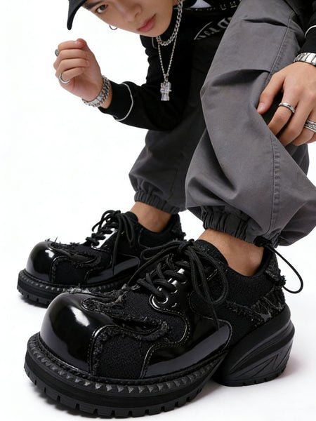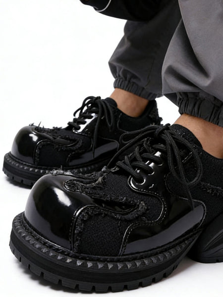 PINJIAHUI | Patchwork Patent Leather Derby Shoes