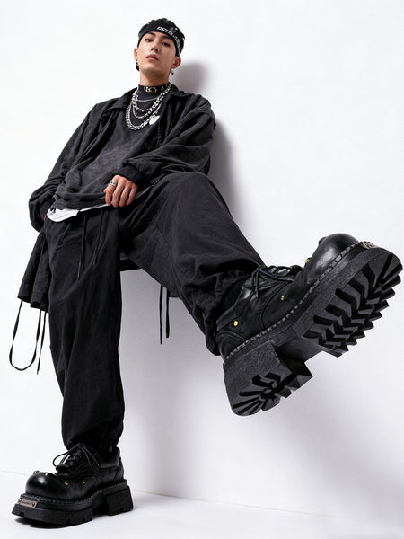 PINJIAHUI | Metal Shoelace Eyelet Platform Shoes