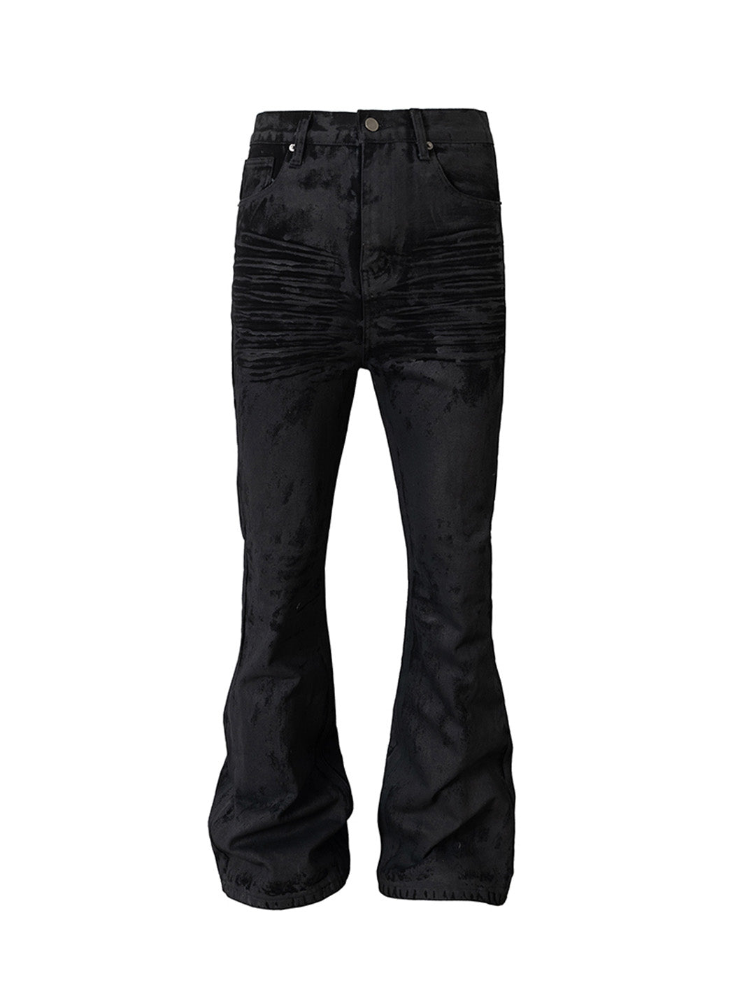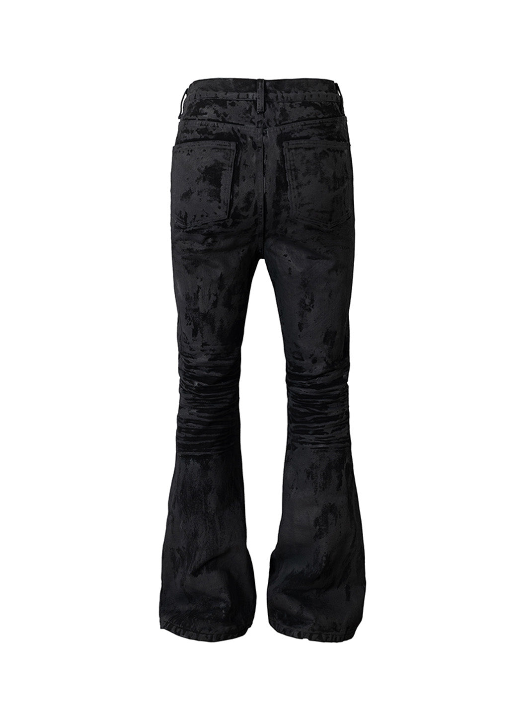 Made with high-quality 140Z denim fabric, the fabric is crisp and structured, with a slightly flared fit that flatters the figure. The entire pair of pants undergoes a distressing process followed by hand-waxing, resulting in a heavy-duty, weighted look. The whiskers and honeycomb details are all achieved using a 3D process, making them the perfect choice for trendy outfits and everyday commutes.