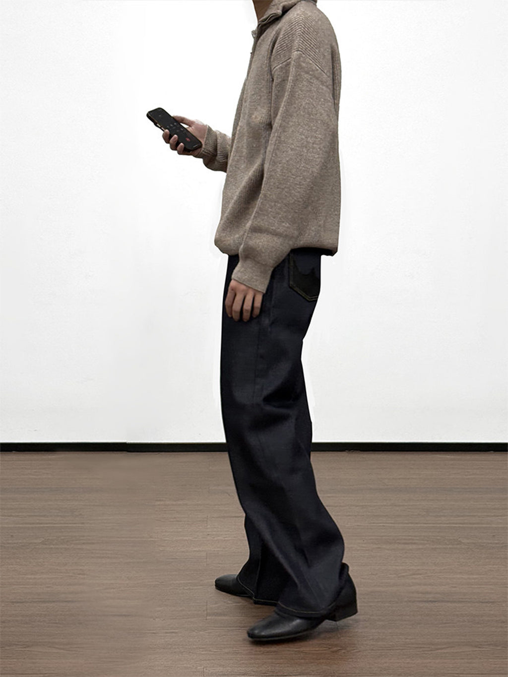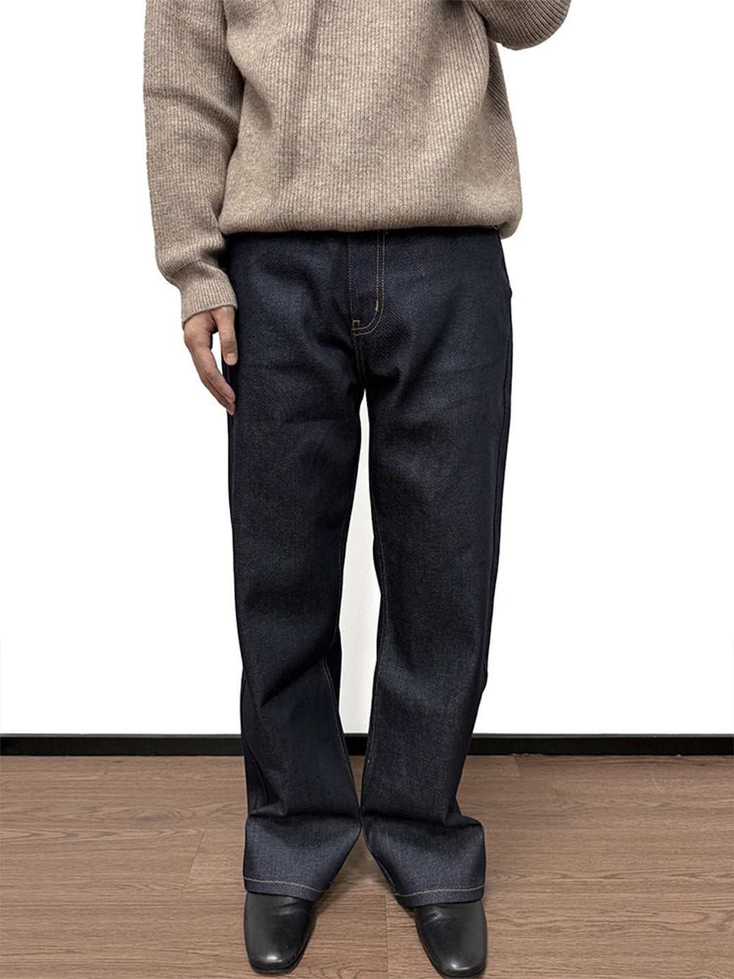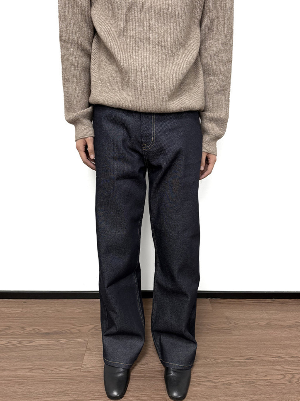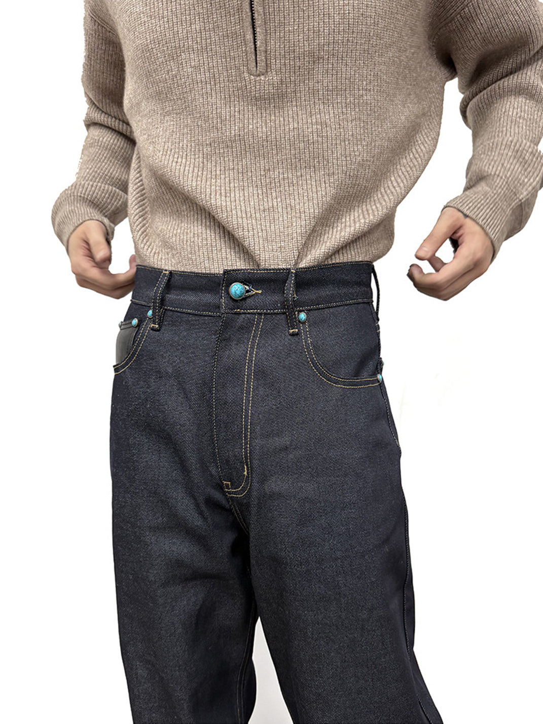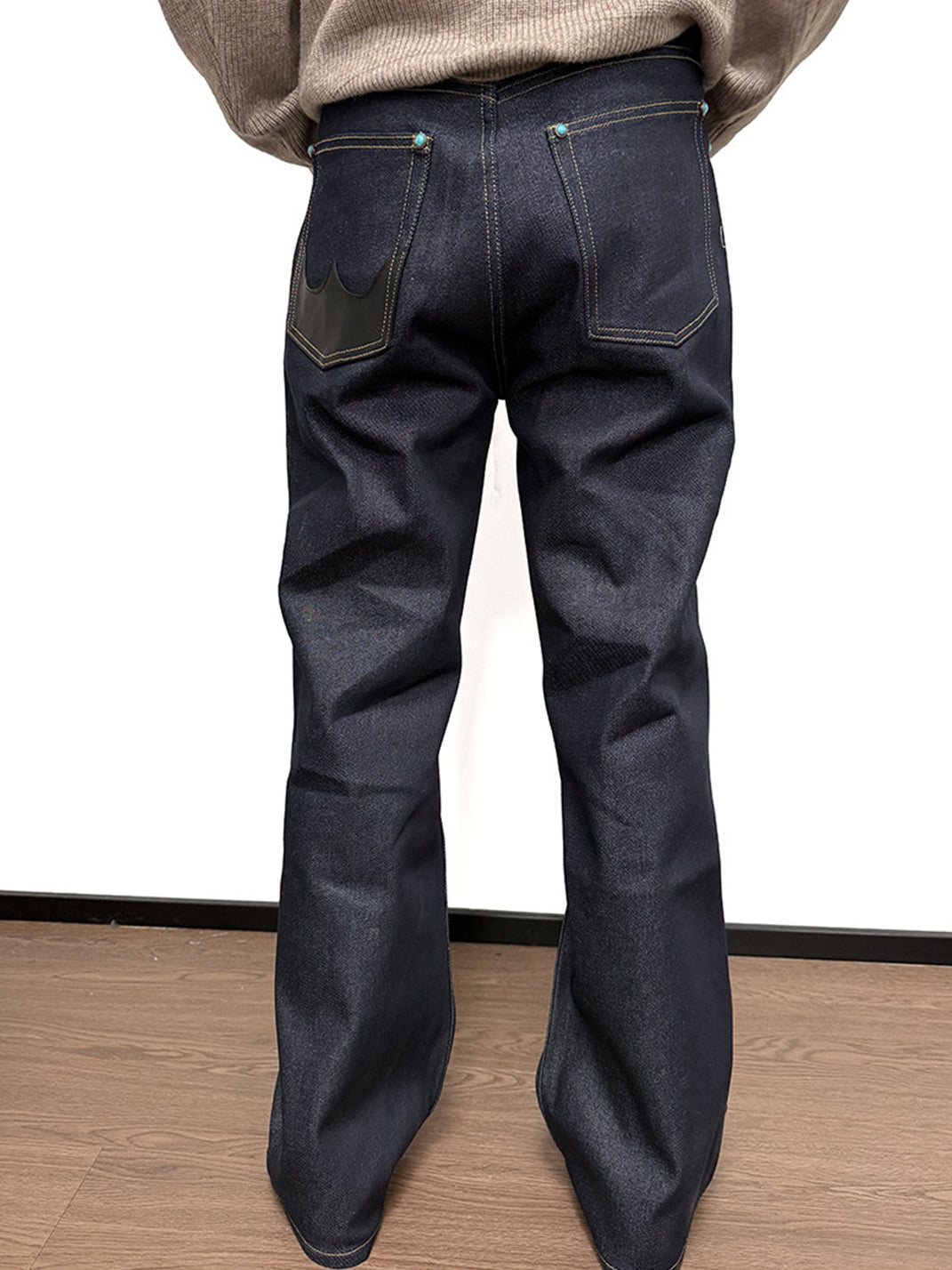 WANNA LAB | Turquoise Sheepskin Patchwork Straight-Leg Jeans Skip to content