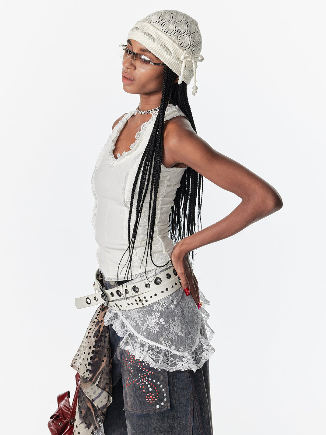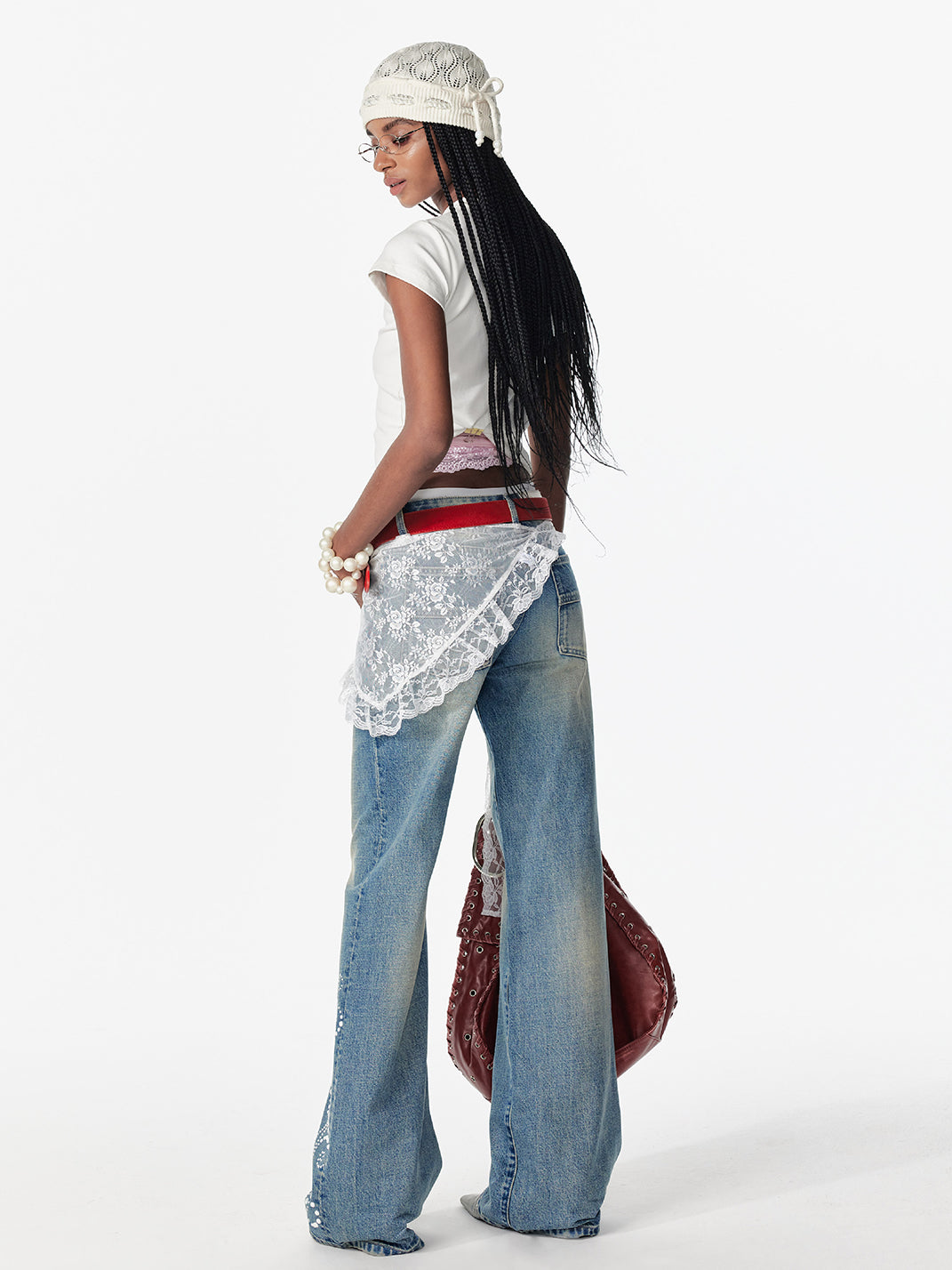2th Desire | Asymmetrical Lace Trim Mesh Overlay Skirt Skip to content